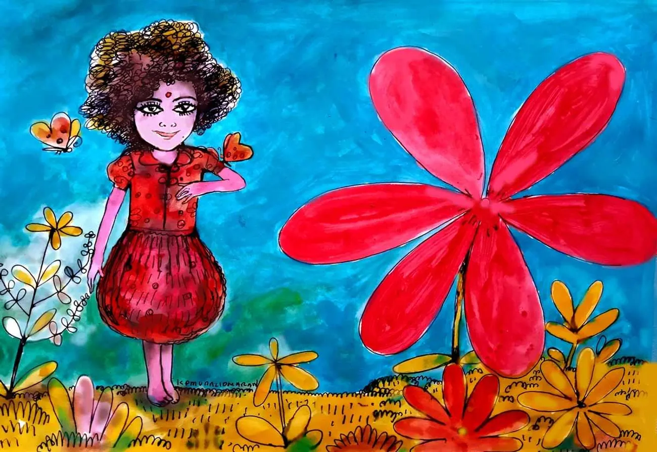 ""അന്നെപ്പോലെ തന്നെ'' ഏട്ടമ്മ കുത്തുവാക്കുകൾ പറഞ്ഞു. ഞാൻ നോക്കി മങ്ങിയ മുഖം. അൽപ്പം കൂടി കളറ് കിട്ടാൻ ഞാൻ റെയ്നൊൾഡ്സ് പേനയുടെ നിബ്ബ് ഊരി മഷി ഊതിയുറ്റിച്ച് അത് തേച്ചു ബൊമ്മമുഖങ്ങളുണ്ടാക്കി നോക്കി. കുട്ടികൾ കളിയാക്കി. എന്നാലും ആശാരിമാമന്റെ പേരക്കുട്ടി ബിന്ദു പൊട്ടിപ്പൊട്ടിച്ചിരിച്ചു