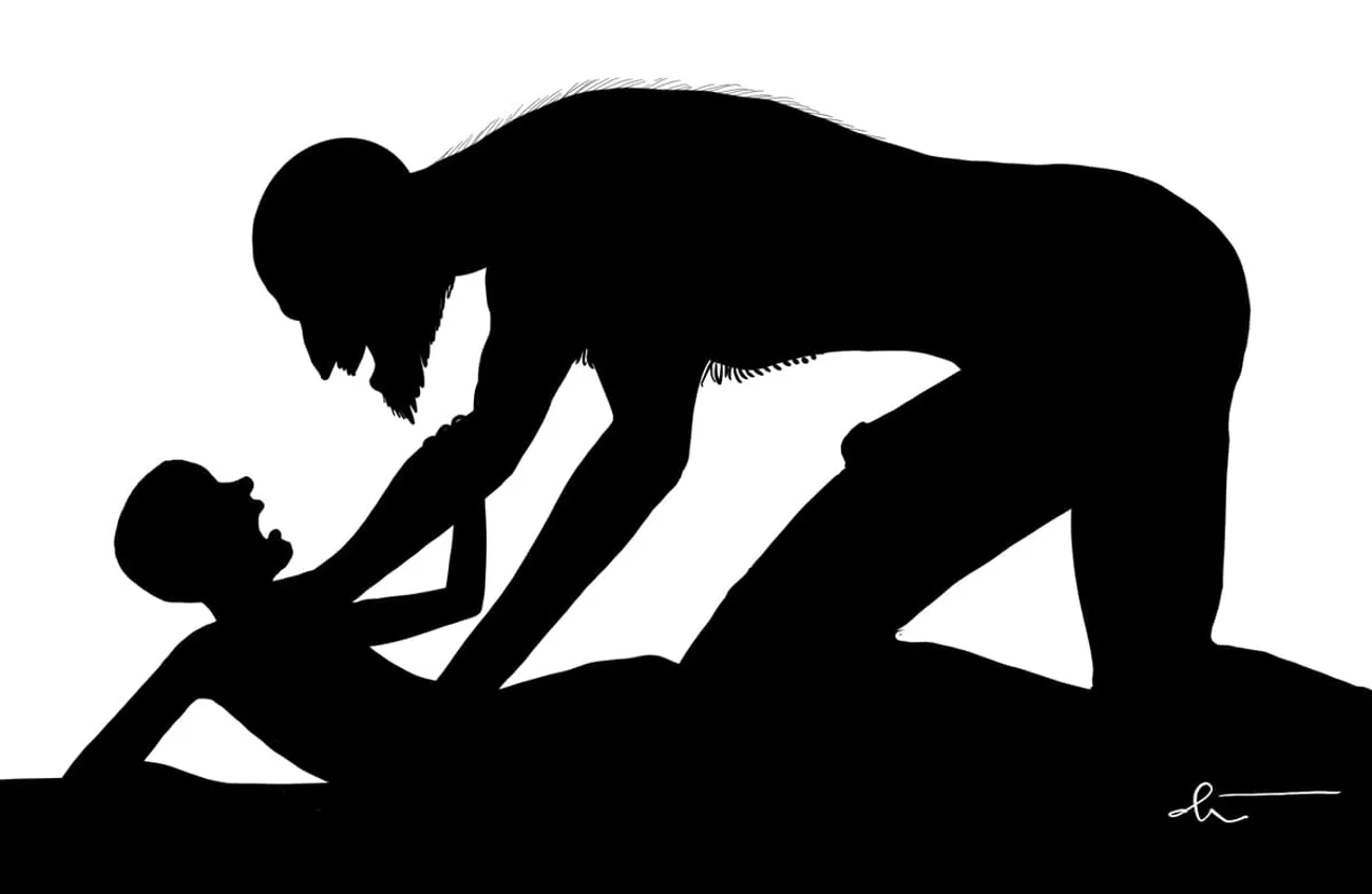 അയാൾ വല്ലാതെ കിതച്ചു. കണ്ണുകളിലെ തിരയിരമ്പം ഉച്ചത്തിലായി. എന്റെ കൈ പിടിച്ച് അയാൾ തന്റെ കുഴഞ്ഞുകിടന്ന ലിംഗത്തിൽ തൊടുവിച്ചു. ഒരു പാമ്പിനെ തൊട്ടാലുണ്ടാവുന്ന ഭയത്തിലും അറപ്പിലും ഞാൻ കൈ വലിച്ചെടുത്തു. കയ്യിൽ ഭയം പുരണ്ടു. ഞാൻ കൈ എന്റെ മുണ്ടിൽ തോർത്തുന്നത് കണ്ട് അയാൾ ഉറക്കെ ചിരിച്ചു. ചിരിച്ചപ്പോൾ വായിൽനിന്ന് മുറുക്കാൻ നീര് ചോര നിറത്തിൽ പുറത്തേക്ക് തെറിച്ചു. എന്റെ മുഖത്തും തലമുടിയിലും ആ ചുവന്ന മുറുക്കാൻ നീര് പാമ്പിൻ സ്പർശമായി വീണു.