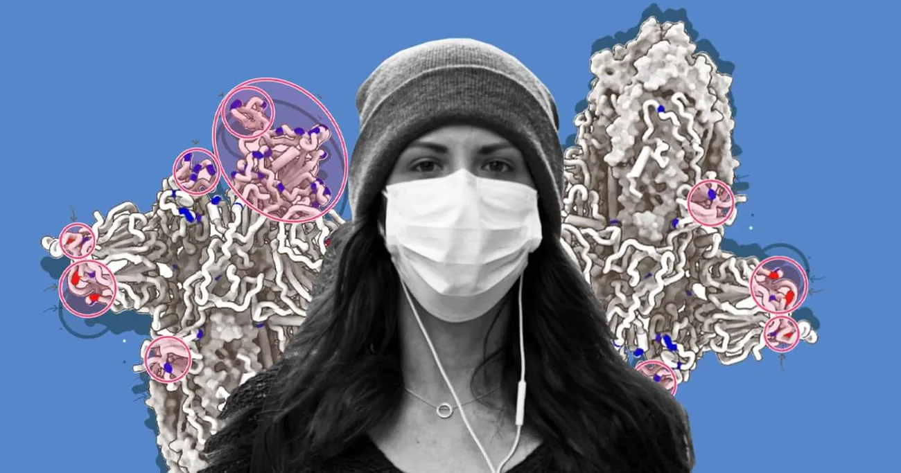 50 മ്യൂട്ടേഷനുകൾ (ആർ. എൻ. എ കണ്ണികളിൽ വരുന്ന മാറ്റം) ആണ് ഒമിക്രോണിൽ. ഇവയിൽ 30 എണ്ണം സ്പൈക് പ്രോട്ടീനിലാണെന്നുള്ളതാണ് പ്രാധാന്യം അർഹിക്കുന്നത്. ഇതിൽ 15 എണ്ണം ഈ സ്പൈക് പ്രോട്ടീൻ നമ്മുടെ കോശോപരിതലത്തിലെ ACE2 (angiotensin converting enzyme receptor) എന്ന സ്വീകരിണീ (receptor) യിൽ പറ്റിപ്പിടിയ്ക്കാനുള്ള ഇടത്തിലാണ്. പെട്ടെന്ന് പകരാനുള്ള ഒരു കാരണം ഇതായിരിക്കാം. അതിനടുത്തായുള്ള ഒരിടത്ത് (ചിത്രം 2) 4 മ്യൂട്ടേഷൻ നടന്നിട്ടുണ്ട്, കുത്തി വെപ്പു കൊണ്ടോ രോഗം വന്നോ നമ്മൾ ആർജ്ജിച്ച് നിർമ്മിച്ചെടുക്കുന്ന ആന്റിബോഡികൾ ഈ ഭാഗത്ത് വന്ന് പതിയുമ്പോൾ വൈറസിന് കോശങ്ങളിൽ പറ്റിപ്പിടിയ്ക്കാൻ സാധിക്കാതെ വരും. മ്യൂട്ടേഷൻ സംഭവിച്ച് ഈ ഇടം മാറിപ്പോയാൽ ഈ binding നടന്നേക്കുകയില്ല എന്ന് അനുമാനമുണ്ട്.