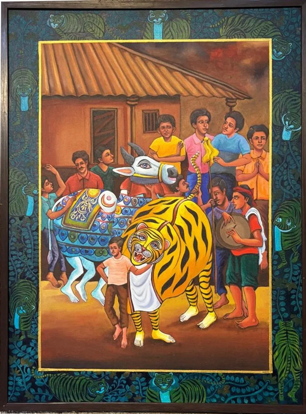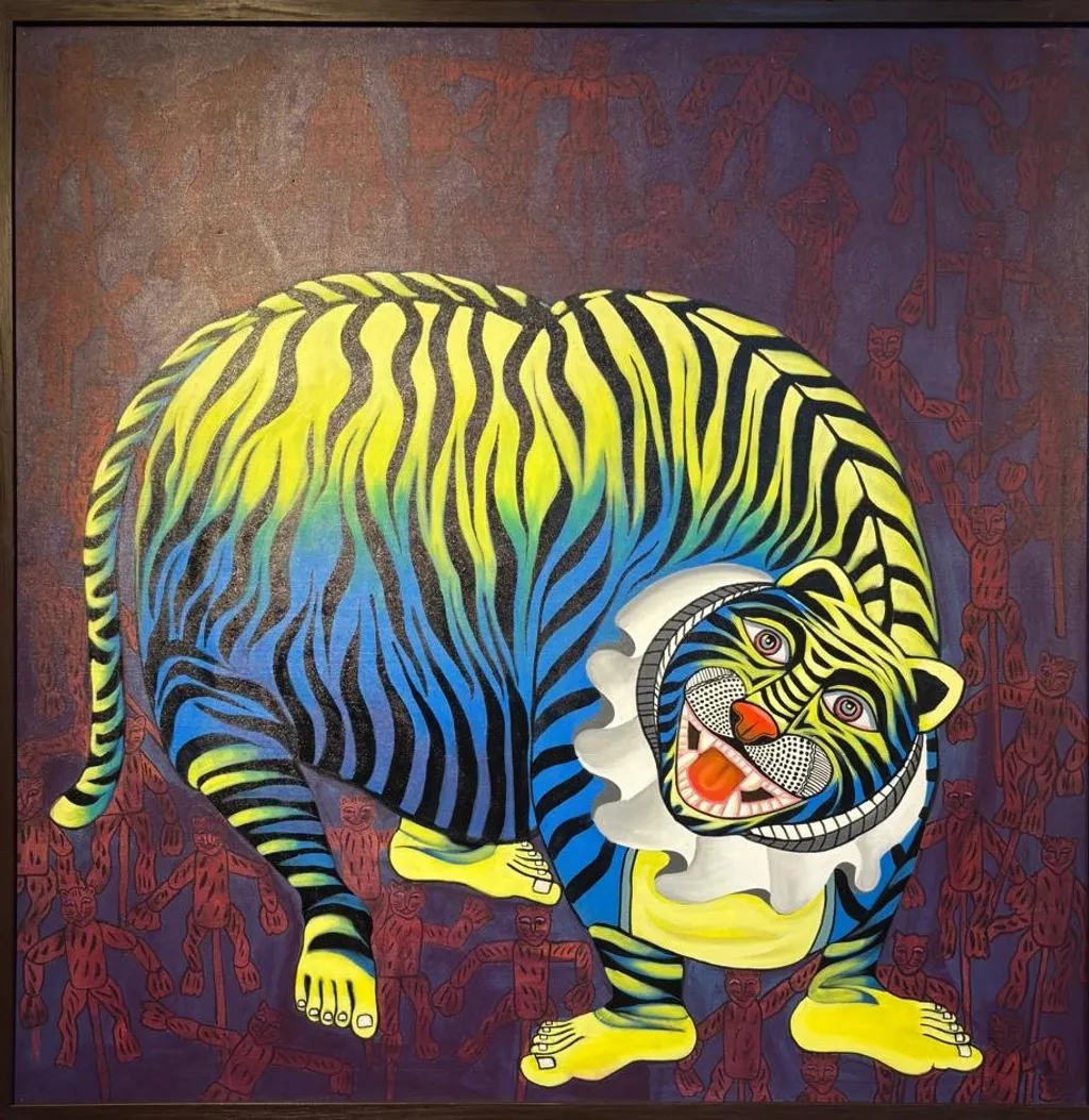 മനുഷ്യർ എത്ര പെട്ടന്നാണ് തങ്ങളുടെ ബാല്യകൗമാരങ്ങളിലേക്ക് കൂപ്പു കുത്തുന്നത്. അനായാസമായി കണ്ടെടുക്കുന്ന ഓർമ്മകളെ കാലം അനുവദിച്ചുതരുന്ന കാഴ്ചകളോട് ചേർത്തു വയ്ക്കുന്നത്. കൻഹ ബെഹ്റയെന്ന ആർട്ടിസ്റ്റും വഴികണ്ടെത്തുന്നത് പിന്നിട്ട വഴികളിലെ ഓർമ്മകളിൽ നിന്നാണ്. അതിലൊന്നിൽ നിലനിൽക്കാനും, കലയെ അർത്ഥവത്തായ സാക്ഷാത് കാരത്തിലേക്കെത്തിക്കാൻ കടുവ ഇമേജറികൾ മാത്രമേ വരയ്ക്കു എന്ന് തന്നോടുതന്നെ വാക്കു കൊടുത്തുകൊണ്ടാണ്.