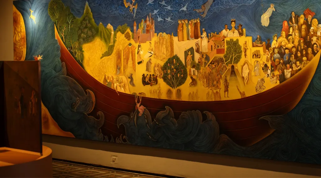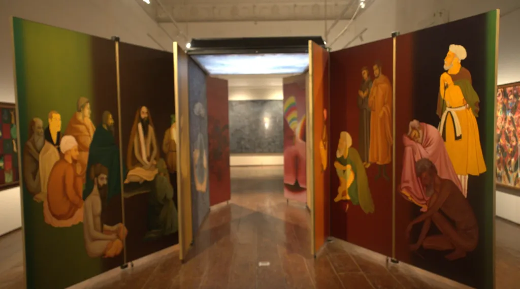 ദർബാർ ആർട്ട് ഗാലറിയിൽ പ്രദർശിപ്പിക്കുന്ന, ഗുലാം മുഹമ്മദ് ഷെയ്ഖിന്റെ അറുപതുകൾ മുതൽ 2025 വരെയുള്ള വർക്കുകൾ. ഫോട്ടോ: ബിജു ഇബ്രാഹിം.