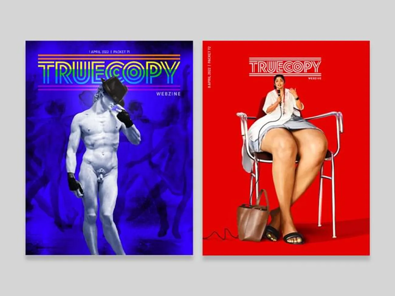 ട്രൂ കോപ്പി വെബ്സീൻ ആപ്പിൽ അവരുടെ തൊട്ടുമുമ്പുള്ള ലക്കത്തിൻറെ കവർ ഒരിക്കൽക്കൂടി എടുത്തുനോക്കി. ഈ ലക്കത്തിലെ റിമയുടെ കാലിന്റെ ഒരൽപ്പം ഭാഗം ഉൾപ്പെട്ടുപോയത് തൽക്കാലം കണ്ടില്ലെന്ന് കരുതാനാകുന്നവർ മാത്രം അതിനുതാഴെയുള്ള ഡേവിഡിനെ കാണുക, തുടർന്ന് വായിക്കുക.