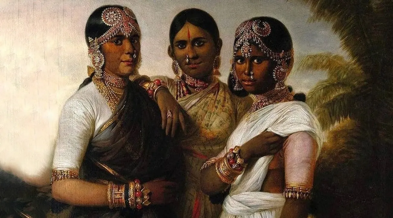 രാജഭരണകാലത്ത് വരയ്ക്കപ്പെട്ട ഒരു സാധാരണ ചിത്രമായി അത് ലേലത്തിൽ പോകുമായിരുന്നു. പക്ഷേ ആ ചിത്രത്തിലെ മൂന്ന് പെണ്ണുങ്ങളിൽ ഒരാളുടെ അസാധാരണമായ നിൽപ്പ് കേംബ്രിഡ്ജ് സർവകാലാശാലയിലെ ചരിത്രകാരനായ ഡോ. നിഗർ ചാൻസലറുടെ കണ്ണിൽപ്പെട്ടു. മേൽവസ്ത്രം ധരിച്ചിട്ടുണ്ടെങ്കിലും കൈ മറഞ്ഞു കിടക്കേണ്ട വെള്ളസാരി അൽപ്പം ഉയർത്തി കൈമുട്ടിന് മുകളിലുള്ള ഭാഗം വ്യക്തമായി കാണിച്ചാണ് അവളുടെ നിൽപ്പ്. കൈത്തണ്ടയിലും കഴുത്തിലും തലയിലുമെല്ലാം പൊന്നിൽ തീർത്ത ആഭരണങ്ങൾ അവൾ ധരിച്ചിട്ടുണ്ട്. കൂട്ടത്തിൽ ഏറ്റവും പ്രായം കുറവായിട്ടുള്ളത് വ്യത്യസ്തമായ നിൽപ്പുള്ള അവൾക്ക് തന്നെയാണ്. എന്തു കൊണ്ടാണ് അവൾ മാത്രം കൈയുടെ മുകൾ ഭാഗം പ്രദർശിപ്പിച്ചു നിൽക്കുന്നത്?