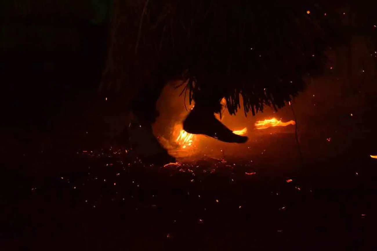 തിറയ്ക്ക് ‘കൂടം' ഉള്ള ചെമ്മക്കാർ ഇത് കൊണ്ടുവരും. ചെമ്മത്തിലെ വെള്ളക്കെട്ടിയ മുതിർന്ന കാർന്നോർമാർ വെളുപ്പിന് മൂന്നിന് കൂടവുമായി പുഴയിൽ പോയി മുങ്ങിക്കുളിച്ച് കളരി പയറ്റി, വലിയ തീപ്പന്തങ്ങൾ പിടിച്ച്, വീട്ടിലേക്ക് കയറിവരും.