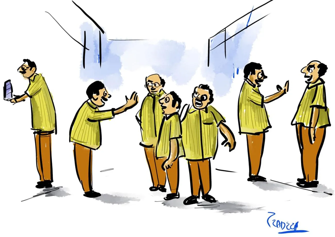 ‘‘അതോ, രാവിലെ പഞ്ച് ചെയ്യുന്നിടത്ത് രണ്ടുപേർ (ഞാൻ തലേന്ന് വിളിച്ചു സംസാരിച്ച സുഹൃത്തും, അയാളുടെ സമാനമനസ്കനും) എല്ലാവരേയും വിളിച്ചുനിർത്തി ഈ വിശേഷം മാക്സിമം പ്രചരിപ്പിച്ചുകൊണ്ടിരിക്കയാണ്! എന്തിനാണ് ഈ വിവരം ഇവന്മാരോട് പറയാൻ പോയത്? ഇത് വലിയ പ്രശ്നങ്ങളുണ്ടാക്കും!''
