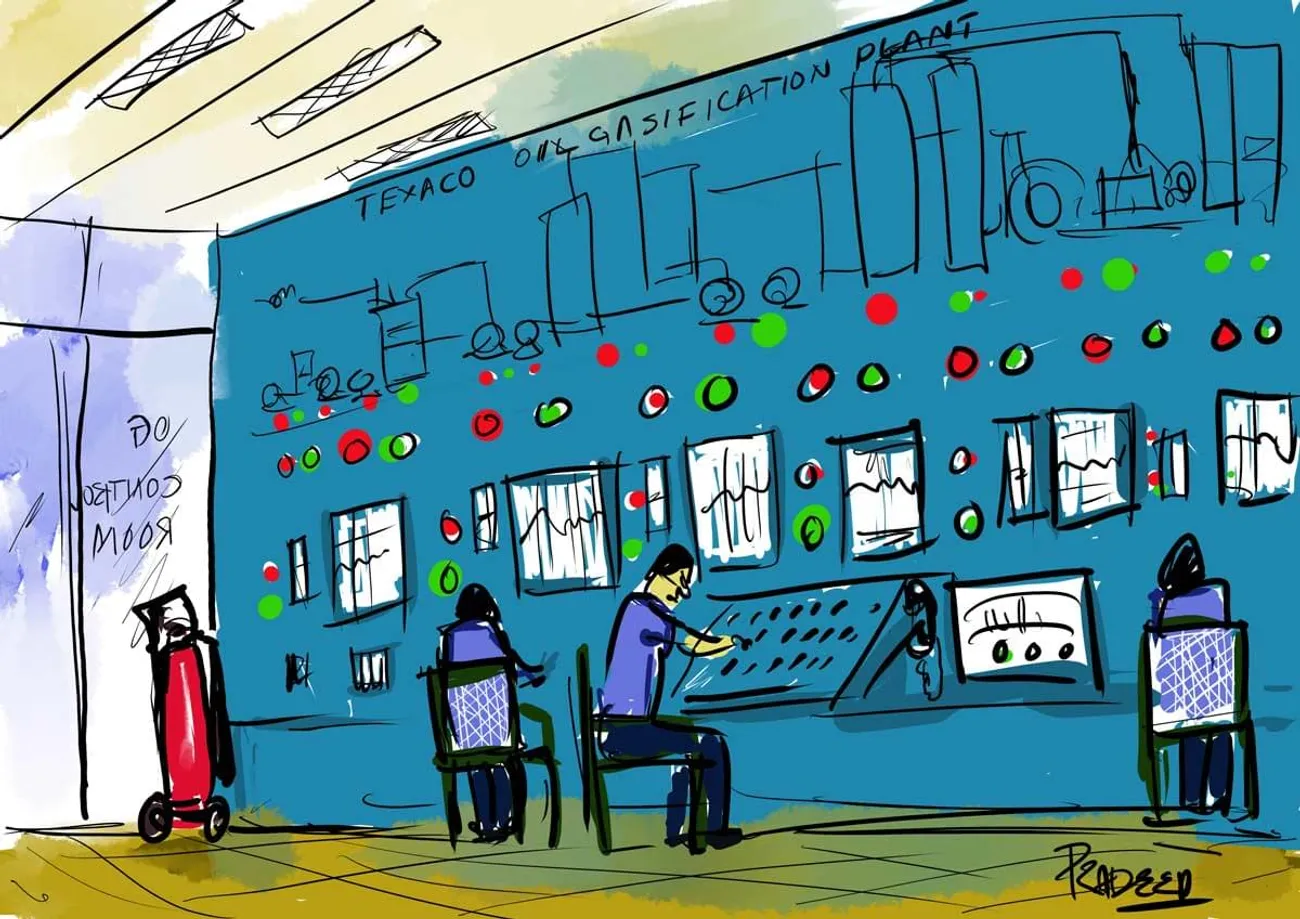 ഒ. ജി പ്ലാൻറ് പോലെ ഗ്യാസ് പ്ലാന്റുകളിൽ ഓപ്പറേഷൻ വളരെ സൂക്ഷ്മത വേണ്ടതും ഒരു പരിധിവരെ അപകടകരവുമാണ്. ഉയർന്ന താപവും മർദ്ദവുമുള്ള കുഴലുകളും വെസ്സലുകളും. വലിയ പമ്പുകളും വാൽവുകളും. കാർബൺ മോണോക്സൈഡ് പോലെ മാരകമായതും, ഹൈഡ്രജൻ പൊലെ അതീവ ജ്വലനശേഷിയുള്ളതുമായ വാതകങ്ങളാണ് ഈ താപത്തിലും മർദ്ദത്തിലും കുഴലുകളിലൂടെ ഒഴുകുന്നത്! ഇന്നത്തെപ്പോലെ തടസ്സമില്ലാത്ത വൈദ്യുതിസംവിധാനങ്ങൾ അന്നില്ല. ഫലമോ ഒരു വോൾട്ടേജ് വ്യതിയാനം വന്നാൽ, ഒരു പമ്പ് നിന്നുപോയാൽ, പ്ലാൻറ് മൊത്തം നിന്നുപോവുന്ന അവസ്ഥ. പ്ലാൻറ് നിർത്തുക എന്നത് ക്ലേശകരമാണ്. എല്ലാവരും സഹകരിച്ച് അടിയന്തിരമായി ചെയ്യേണ്ടുന്ന ഒരുപാട് കാര്യങ്ങളുണ്ട്. പ്ലാൻറ് വീണ്ടും സ്റ്റാർട്ട് ചെയ്യുന്നതും അതുപോലെ ശ്രമകരമായ ജോലിയാണ്. പ്ലാൻറ് പ്രവർത്തനക്ഷമമാകുന്നത് ചിലപ്പോൾ ദിവസങ്ങൾ നീണ്ടേക്കാം. ശ്രമകരം മാത്രമല്ല, അതീവ അപകടകരവുമായ പ്രവൃത്തിയാണ് ഇത്തരം പ്ലാന്റുകൾ നിർത്തുന്നതും, തുടങ്ങുന്നതും. അതിന്റെയൊരു പിരിമുറുക്കം എപ്പോഴും അവിടെ നിറഞ്ഞുനിന്നിരുന്നു.
