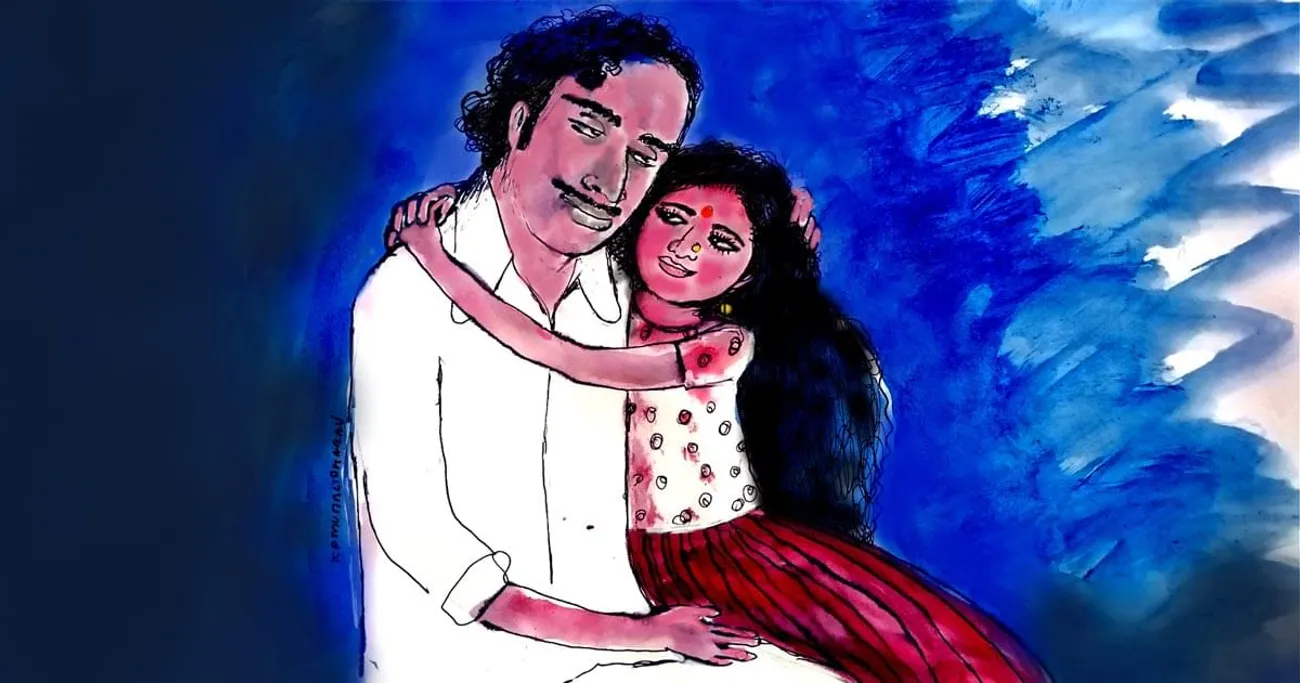 അച്ഛന്റെയും അമ്മയുടെയും വിവാഹ ശേഷ ജീവിതം ആരംഭിക്കുന്നത് അമ്മവീട്ടിലാണ്. കോഴിക്കോട് വീട്ടിൽ നിന്ന് കല്യാണം കഴിഞ്ഞ് അമ്മയുമച്ഛനും രാത്രിത്തീവണ്ടിയ്ക്ക് കൊല്ലത്തേയ്ക്ക് പോയി. ഇത്രയേറെ ആളുകളുള്ളതിനാൽ റിസർവേഷൻ ചിലർക്ക് കിട്ടിയില്ല. ബർത്ത് കിട്ടിയവരാകട്ടെ കിടക്കാതെ സീറ്റ് പങ്കിട്ടു. ഇരുന്ന് നടുനിവർത്താതെ ഉറങ്ങാതെ നേരം വെളുപ്പിച്ച ആദ്യരാത്രിയെക്കുറിച്ച് അമ്മയും അച്ഛനും തമാശ പറയുമായിരുന്നു. ഇരുളുവീണ പാതയോരങ്ങൾ തീവണ്ടി ജനലിന്റെ നിഴലിൽ അഴിയിട്ട ചതുരങ്ങൾ തെളിഞ്ഞു. കല്യാണപ്പെണ്ണും ചെക്കനും നിഴലുകളായി നിലത്ത് സഞ്ചരിച്ചുകൊണ്ടേയിരുന്നു..
