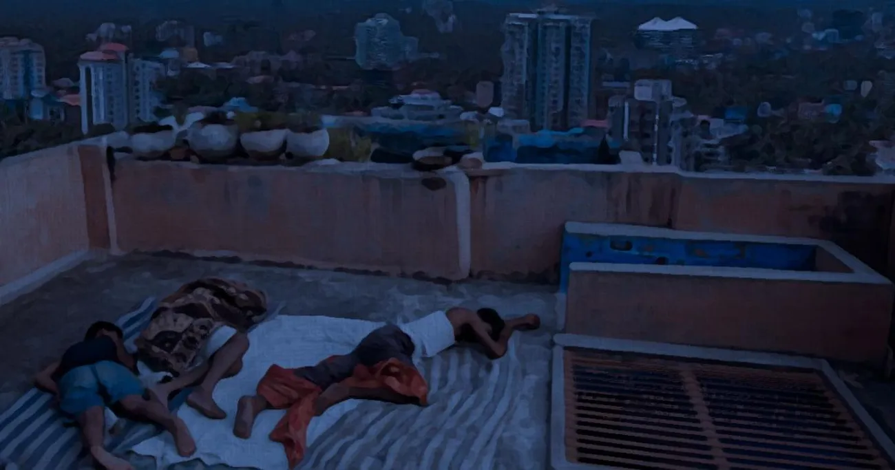 ആ ആറ് കുട്ടികളുടെ അറ്റത്ത് അവരുടെ പുൽപ്പായയിൽ ഇത്തിരി സ്ഥലമുണ്ടാക്കി ഞാൻ കിടന്നു. കോണിക്കൂടിന്റെ നീണ്ടുനിന്ന വാർപ്പിനപ്പുറം ആകാശം തെളിയാൻ തുടങ്ങുകയായിരുന്നു. നക്ഷത്രങ്ങൾ പൂക്കാൻ തുടങ്ങി. ചന്ദ്രനെ മറച്ച മേഘങ്ങൾ നീങ്ങിയപ്പോൾ ആയിരം നഗരവെളിച്ചങ്ങളുമായി നിലാവ് വന്നു. നിലാവത്ത് ആ മെല്ലിച്ച രൂപങ്ങൾ ഞാൻ കണ്ടു. കൈയില്ലാത്ത ബനിയനും കള്ളിത്തുണിയും ധരിച്ച കുട്ടി, തൊട്ടടുത്ത് കിടക്കുന്ന പാൻറുകാരനെ കെട്ടിപ്പിടിച്ചുറങ്ങുന്നു. പാൻറുകാരൻ തൊട്ടപ്പുറത്ത കുട്ടിയെ, ഏറ്റവും ഒടുക്കത്തിൽ പായയും സിമന്റും അതിർത്തി പങ്കിടുന്ന ആ കുളിരിൽ ഞാൻ കിടന്നു. തൊട്ടപ്പുറത്തെ കൈ ഉറക്കത്തിലും എന്നെ വന്ന് കൂട്ടിപ്പിടിച്ചു.
