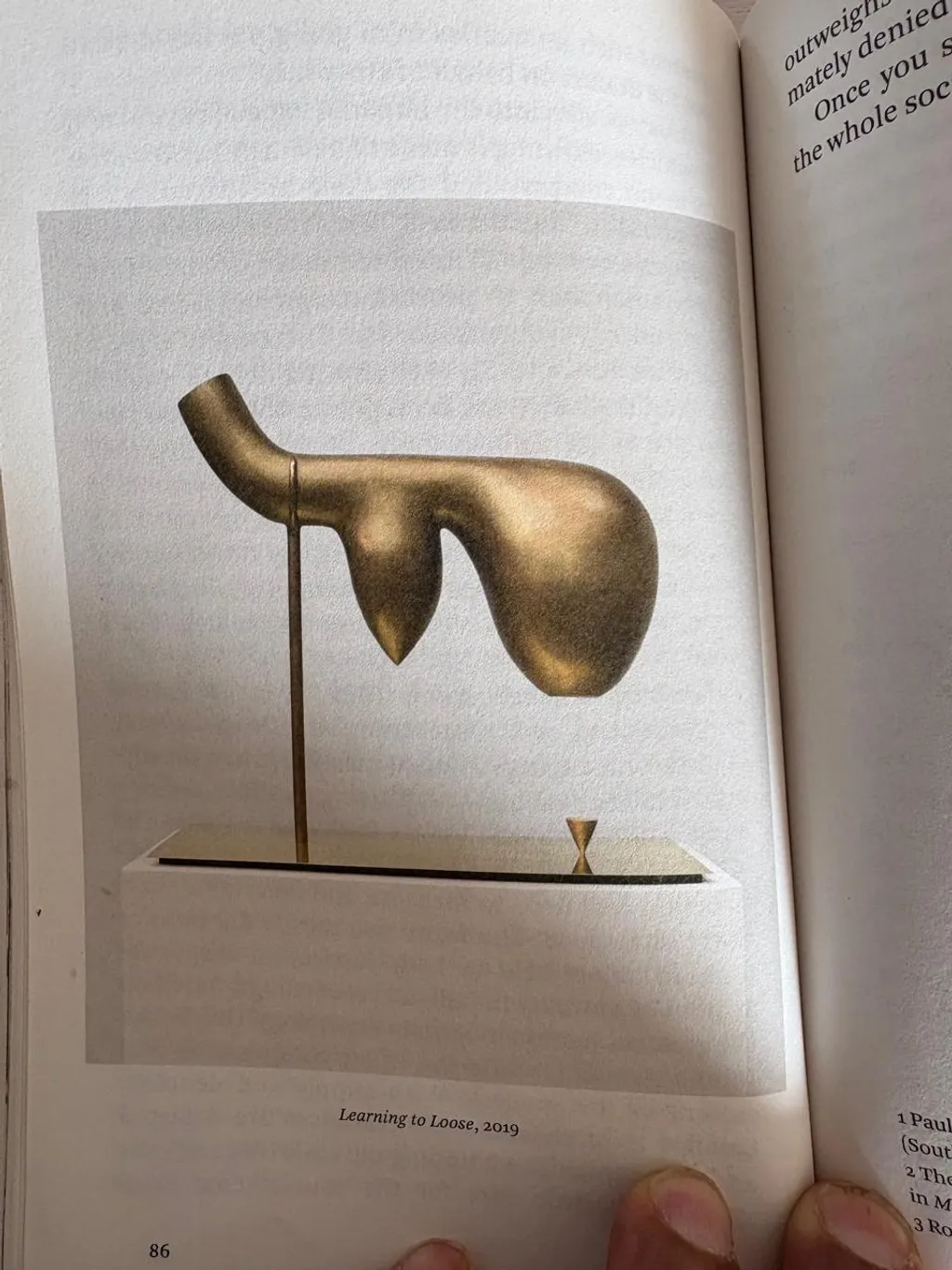ലെർണിംഗ്നോ ലൂസ് (learning to loose, 2019) എന്ന കൃതി ‘സിസ്റ്റംസ് ഓഫ് അറ്റാച്ച്മെന്റ്’ എന്ന പരമ്പരയിൽ നിന്നുള്ളതാണ്. തൂങ്ങിക്കിടക്കുന്ന സ്തനങ്ങളാണ് ഇതിലുള്ളത്. ഇതിൽ ഒന്ന് ‘mastitis’ മൂലം (സ്തനങ്ങളിലെ പാൽക്കുഴലുകൾ തടസ്സപ്പെട്ട് വേദനയുള്ള വീക്കമുണ്ടാകുന്ന അവസ്ഥ) വീർത്തതും മറ്റൊന്ന് പാൽ ഒഴിഞ്ഞു തൂങ്ങിയതുമാണ്. കെട്ടിടനിർമ്മാണത്തിൽ ലംബമാനം അളക്കാനുപയോഗിക്കുന്ന പ്ലംബ് ബോബ് പോലെ ഈ സ്തനങ്ങൾ താഴേക്ക് തൂങ്ങിക്കിടക്കുന്നു. ഈ രൂപം നീതിദേവത കയ്യിലേന്തിയിരിക്കുന്ന തുലാസിനെ ഓർമിപ്പിക്കുന്നു. റോമൻ പുരാണത്തിലെ ജിസ്റ്റിഷ്യ എന്ന ദേവതയെ അടിസ്ഥാനമാക്കിയുള്ള ഈ രൂപം നീതിന്യായ വ്യവസ്ഥയിലെ ധാർമ്മികതയുടെ പ്രതീകമാണ്. ഇതിൽ ഒരു സ്തനം ആവശ്യങ്ങൾ നിറവേറ്റുമ്പോൾ മറ്റൊന്ന് ആ പ്രക്രിയയിൽ വേദന സഹിക്കുകയും സ്വയം ക്ഷയിക്കുകയും ചെയ്യുന്നു. ആവശ്യകതയും ലഭ്യതയും (supply and demand) തമ്മിലുള്ള സന്തുലിതാവസ്ഥ ഇവിടെ അപൂർവമായേ സംഭവിക്കുന്നുള്ളൂ- സ്രോതസ്സിനെക്കുറിച്ച് ഒട്ടും കരുതലില്ലാതെ, വിഭവങ്ങൾ ഒഴിഞ്ഞുപോവുകയും നിറയുകയും ചെയ്യുന്നതിനനുസരിച്ച് തുലാസ് ആടിക്കൊണ്ടിരിക്കുന്നു. തുലാസിൽ ഒരുവശത്തിന് മറ്റേതിനേക്കാൾ ഭാരം കൂടുമ്പോൾ രണ്ടിനും യഥാർത്ഥ മൂല്യം നിഷേധിക്കപ്പെടുകയാണ് ചെയ്യുന്നത്.