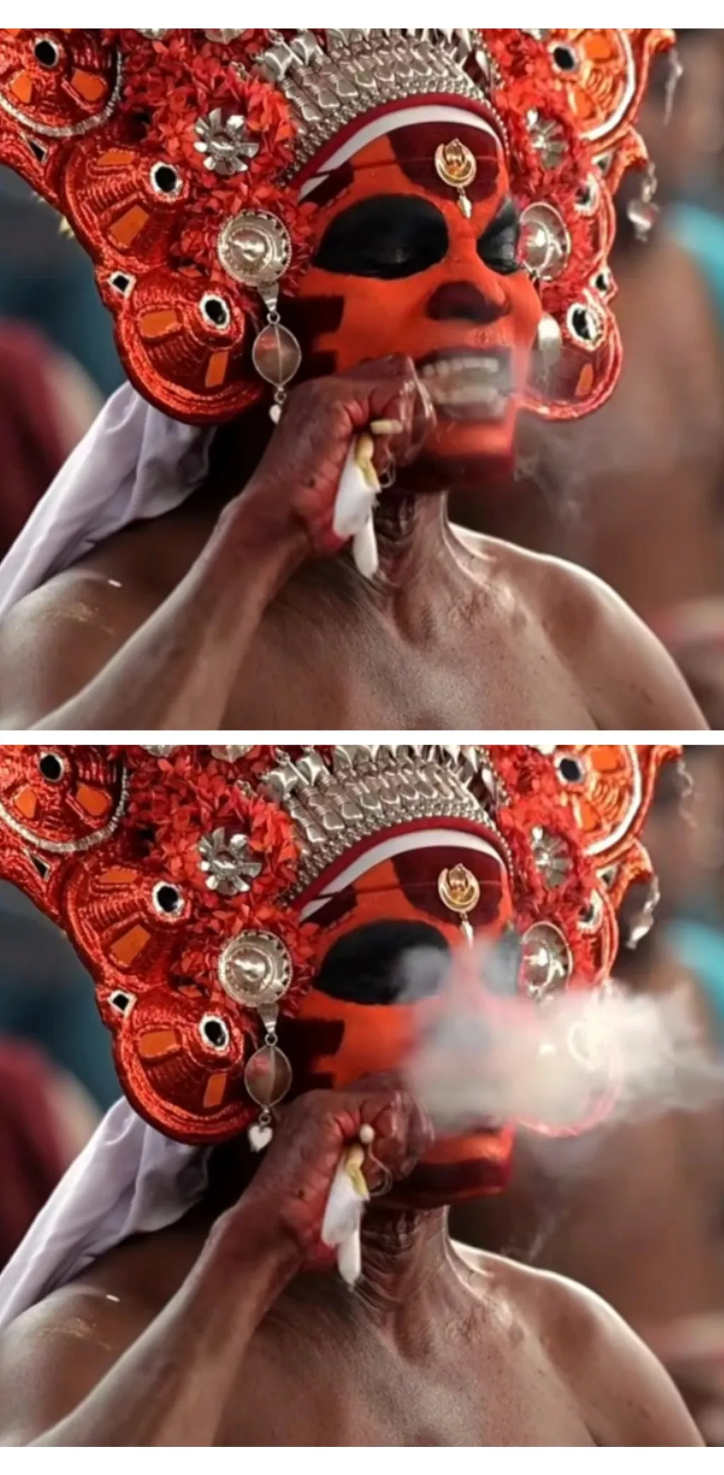 സ്വയം എരിഞ്ഞുരുകിത്തീരുമ്പോഴും മറ്റുള്ളവർക്ക് പ്രകാശമായി തീരുന്ന മഹത്വം എന്ന് മെഴുകുതിരിയെപ്പറ്റി സാഹിത്യം പറയുന്നത് കേട്ടിട്ടില്ലേ. തെയ്യത്തെപ്പറ്റിയും ഇതേ സാഹിത്യഭാഷ എഴുതിയാൽ തെറ്റില്ല.
