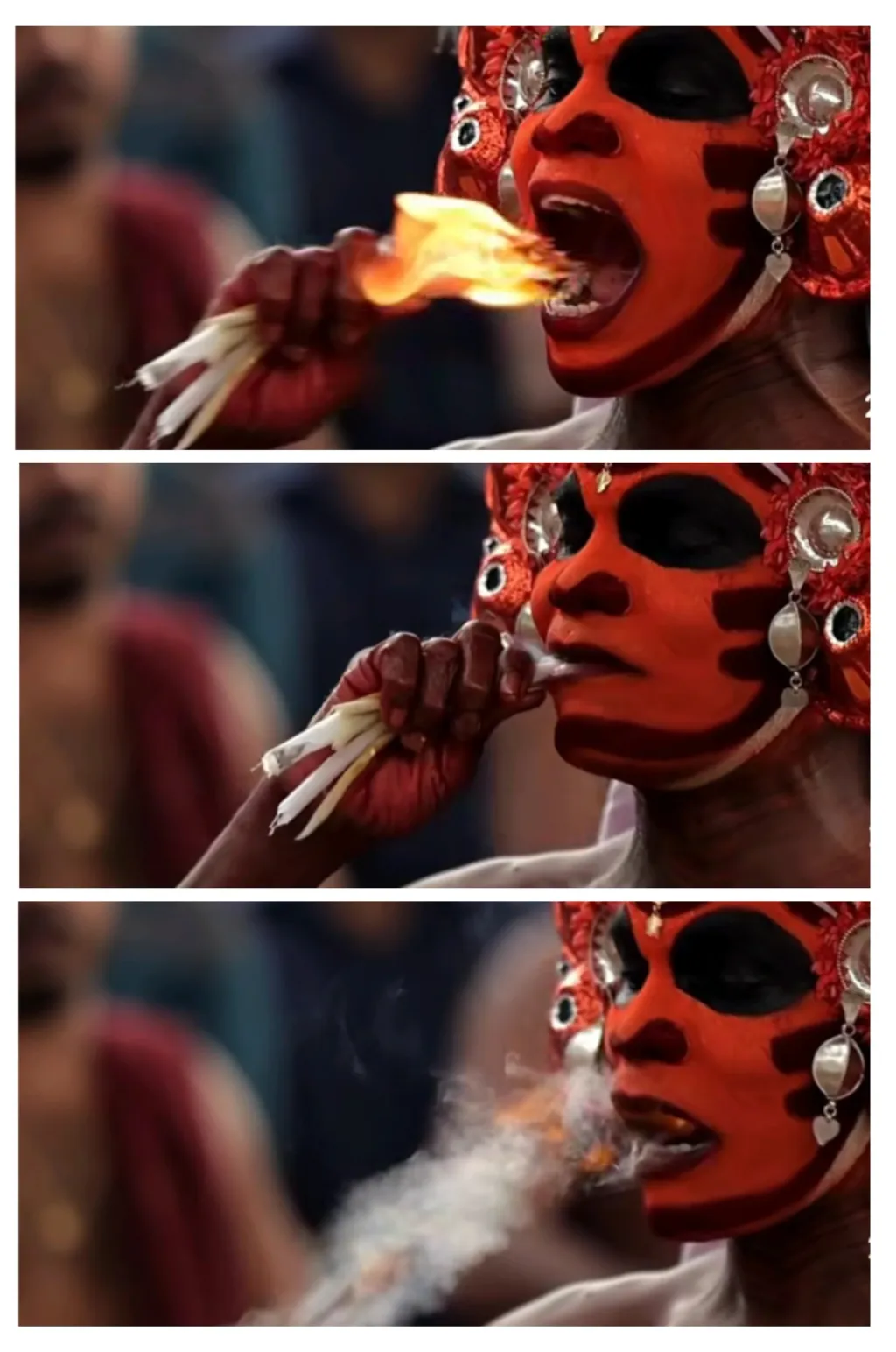 രണ്ട്; ശരീരത്തിൽ തീപ്പന്തങ്ങളുമേന്തി ഭയജനകമാകുന്ന കോലങ്ങൾ.