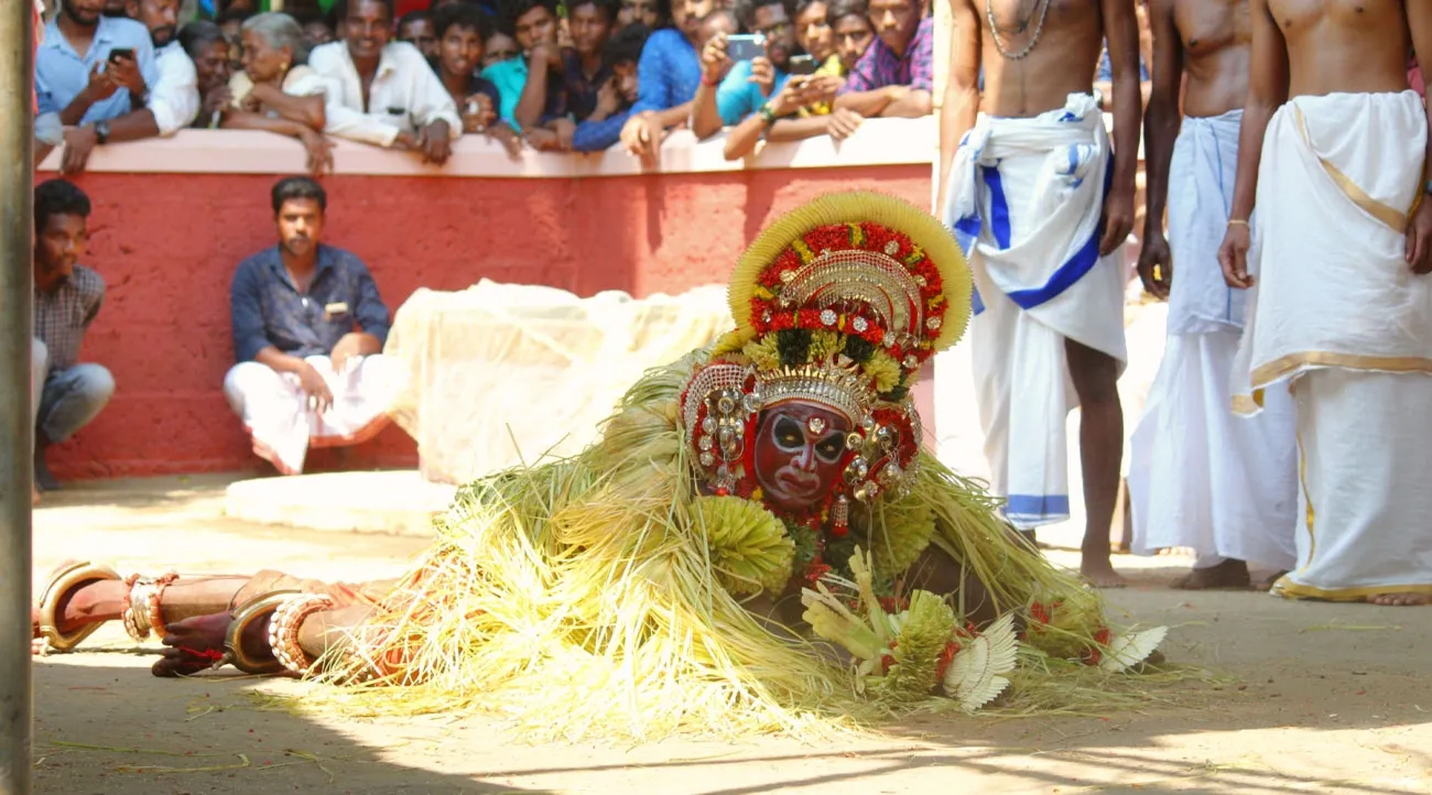 അവൈദിക ധാരയിൽ അവർണ വിഭാഗങ്ങൾക്കിടയിൽ ഒരു കാലത്ത് നിലനിന്നിരുന്ന മാന്ത്രിക ബാധോച്ചാടന ബലികർമങ്ങളുടെ ശക്തിയാണ് കരിഞ്ചാമുണ്ഡി പുറപ്പെട്ടു വന്നാൽ ചെയ്തു തീർക്കുന്ന അനുഷ്ഠാന കർമങ്ങളിൽ സന്നിഹിതമായിരിക്കുന്നത്. വണ്ണാൻ, പുലയൻ, ചെറുമൻ, വേലൻ സമുദായക്കാരാണ് തെയ്യം കെട്ടുന്നത്. ആട്ടുകല്ലെന്ന പോലെ കഴുത്തു കറക്കി പെട്ടെന്നു വെട്ടിച്ചും കലാശങ്ങൾക്കിടയിൽ തല ചെരിച്ചു വശത്തേക്കു നോക്കിക്കൊണ്ടുമുള്ള തെയ്യത്തിന്റെ മുഖഭാവങ്ങൾ ആദ്യമാദ്യം അപരിചിതങ്ങളെന്ന് മനസ്സ് തിരിച്ചറിയും. നിങ്ങൾ അനുവദിച്ചാലും ചിലപ്പോൾ ഇല്ലെങ്കിലും പ്രക്ഷുബ്ധതയും സ്തോഭവും വെച്ച് നിങ്ങളുടെ ഉൾത്തലത്തെ എടുത്ത് പന്താടുവാൻ ഇരുട്ടിൽ ചൂട്ടു വെളിച്ചത്തിലാടുന്ന ഒരു കരിഞ്ചാമുണ്ഡി തെയ്യത്തിനു കഴിയും. കാര്യം എന്താണെന്ന് അറിയണമല്ലോ എന്ന വെറും ഉദ്വോഗം കാരണമായിട്ടായിരിക്കും ചിലപ്പോൾ നിങ്ങൾ തെയ്യത്തിനു മുന്നിൽ വന്നു നിന്നതെങ്കിലും തൊട്ടടുത്താകുമ്പോൾ നിങ്ങളാ അനുഭവ പാതാളത്തിലേക്ക് അറിയാതെ വീണു പോകും. അത്ര മാത്രം വന്യവശ്യത ആ കറുത്ത സൗന്ദര്യ ധാമത്തിനുണ്ട്.
