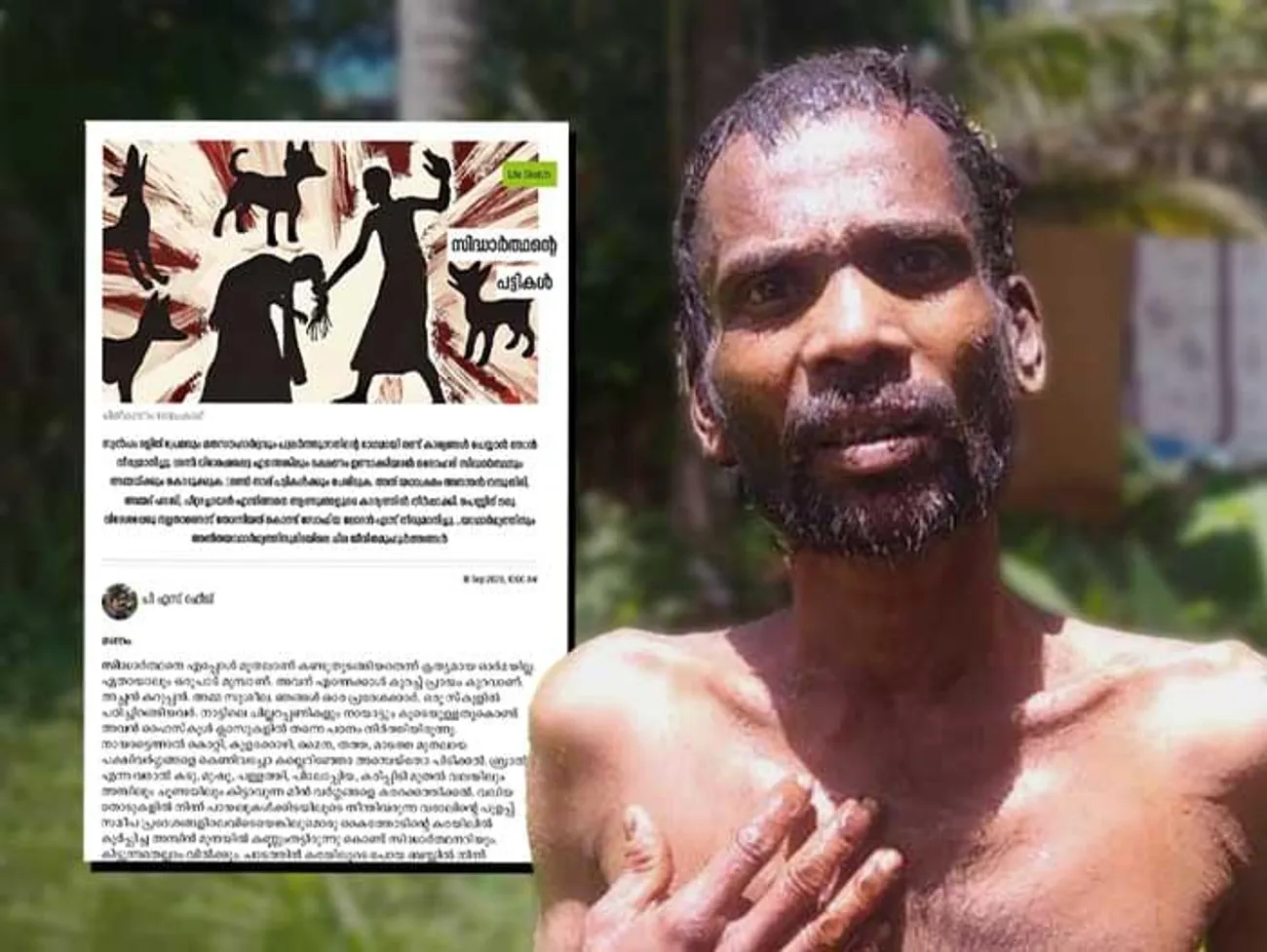 സുഹൃത്തുക്കളേ, അനുനിമിഷം ഇല്ലാതായിക്കൊണ്ടിരിക്കുന്ന നരകജീവിതം നയിക്കുന്ന ഒരു മനുഷ്യനെക്കുറിച്ച് കഥയെഴുതി ട്രോഫി വാങ്ങാനുള്ള ഉദ്ദേശമില്ല. എന്തൊക്കെ ഓർക്കാനുണ്ട് നമുക്ക്. സിദ്ധാർത്ഥന് വിരൽകൊണ്ട് സ്ക്രോൾ ചെയ്ത് കളയാവുന്ന പ്രാധാന്യം കൊടുത്താൽ മതിയാകും. മനുഷ്യന്റെ അവകാശങ്ങളെക്കുറിച്ചും ഇറങ്ങുന്ന സിനിമകളുടെ പൊളിറ്റിക്കൽ കറക്റ്റ്നെസ്സിനെക്കുറിച്ചും ജെൻഡർ ഇഷ്യൂസിനെപ്പറ്റിയും രാഷ്ട്രീയത്തെക്കുറിച്ചും അരാഷ്ട്രീയത്തെപ്പറ്റിയും ഒക്കെ ഒക്കെ സംസാരിക്കാൻ നമ്മൾ തന്നെ വേണമല്ലോ.. ഒരു പണിയും എടുക്കാൻ വയ്യാത്തവർ തെണ്ടിത്തിരിയുകയല്ലാതെ നിവൃത്തിയില്ല (അവർ അരുമില്ലാത്തവരാണെങ്കിൽ പ്രത്യേകിച്ചും).
