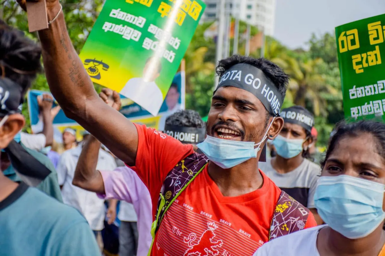 ശ്രീലങ്കയിലുണ്ടായ പ്രതിഷേധം ഏതെങ്കിലുമൊരു രാഷ്ട്രീയ പാർട്ടിയല്ല സംഘടിപ്പിച്ചത്, അത് ആൾക്കൂട്ടങ്ങളിൽനിന്ന് പൊടുന്നനെ പൊട്ടിപ്പുറപ്പെടുകയായിരുന്നു. ജനകീയമായ ആവശ്യങ്ങളിലൂന്നിയുള്ള സമരങ്ങളായിരുന്നു അവ. പ്രസിഡൻറ് മാറണം എന്ന ആവശ്യവും പ്രതിഷേധക്കാർ ഉന്നയിച്ചു. സൈന്യം തെരുവിലിറങ്ങി, പൊലീസ് ജനങ്ങൾക്കൊപ്പം നിന്നു, രാഷ്ട്രീയപാർട്ടി പ്രവർത്തകരും ജനങ്ങളും പ്രതിഷേധിച്ചു. ഒരു ആഭ്യന്തരയുദ്ധം, അല്ലെങ്കിൽ രാജപക്സെക്കുവേണ്ടി സൈന്യം അധികാരത്തിലെത്തുക എന്നീ രണ്ടു സാധ്യതകളാണ് ജനുവരിയിൽ മുന്നിൽ കണ്ടത്. കലാപത്തിന്റെ തുടക്കത്തിൽ, മഹിന്ദയെ വച്ചുകൊണ്ടുതന്നെ ദേശീയ സർക്കാർ രൂപീകരിക്കാൻ ശ്രമം നടന്നു. എന്നാൽ, നേതൃത്വം ഈ കുടുംബത്തിന്റെ തന്നെ കൈയിലായിരിക്കുമെന്നതിനാൽ അതിന് പ്രധാന പ്രതിപക്ഷനേതാവായ സജിത് പ്രേമദാസെയും എസ്. ജെ. ബിയും അനുകൂലമായിരുന്നില്ല. ഈ സാഹചര്യത്തിൽ കലാപം മൂർച്ഛിക്കുകയും മഹിന്ദ രാജിവച്ച് ട്രിങ്കോമാലിയിലെ നേവൽ ക്യാമ്പിൽ ഒളിവിൽ പോകുകയും ചെയ്തു.