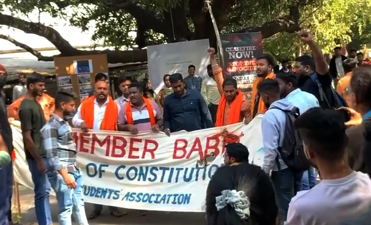 പ്രതിഷേധ പരിപാടുകളുമായി ബന്ധപ്പെട്ട ചിത്രങ്ങൾവിദ്യാർഥികൾ സാമൂഹ്യമാധ്യമങ്ങളിൽ പങ്കുവെച്ചത് കണ്ടിട്ടാകാം, അക്രമികൾ ജനുവരി 23 ന് കാമ്പസിൽ അതിക്രമിച്ച് കയറിയതെന്നാണ് കരുതപ്പെടുന്നത്. ഉച്ചയ്ക്ക് ഒന്നരയോടെ കാവിക്കൊടികളുമേന്തി, ജയ്ശ്രീറാം വിളികളോടെ കാമ്പസിൽ അതിക്രമിച്ചുകയറിയ സംഘ് അനുകൂലികൾ വിദ്യാർഥികളെ മർദ്ദിക്കുകയും ബാനർ കത്തിക്കുകയുമായിരുന്നു. ബാബറി മസ്ജിദ് തകർക്കലുമായി ബന്ധപ്പെട്ട് വിദ്യാർഥികൾ ഒരുക്കിയ ഫോട്ടോ പ്രദർശനവും ഇവർ തകർത്തു. ഇത്രയും അതിക്രമമുണ്ടായിട്ടും സുരക്ഷാ ഉദ്യോഗസ്ഥർ തടയാൻ ശ്രമിച്ചില്ലെന്ന് വിദ്യാർഥിയായ മുഹമ്മദ് റിയാൽ പറഞ്ഞു: “കാമ്പസിലെ സെക്യൂരിറ്റികളൊന്നും അക്രമികളെ പിടിച്ചുമാറ്റാൻ ശ്രമിച്ചില്ല. സുരക്ഷാ പ്രശ്നം ചോദ്യം ചെയ്യുന്നതിനിടെയാണ് വിദ്യാർഥി യൂണിയൻ പ്രസിഡന്റ് മൻകപിനെയും ജനറൽ സെക്രട്ടറി സായന്തിനെയും സംഘപരിവാറുകാർ ആക്രമിച്ചത്. വിദ്യാർഥികളെ ആക്രമിക്കുന്ന സമയത്തെല്ലാം സെക്യൂരിറ്റി നോക്കിനിൽക്കുകയായിരുന്നു. മൻകപിനെ ഓടിച്ചിട്ട് കൂട്ടമായി തല്ലി. സായന്തിനെ രക്ഷിക്കാൻ ശ്രമിക്കുന്നതിനിടെ ഒരു വിദ്യാർഥിനിക്കും പരിക്കേറ്റു.”