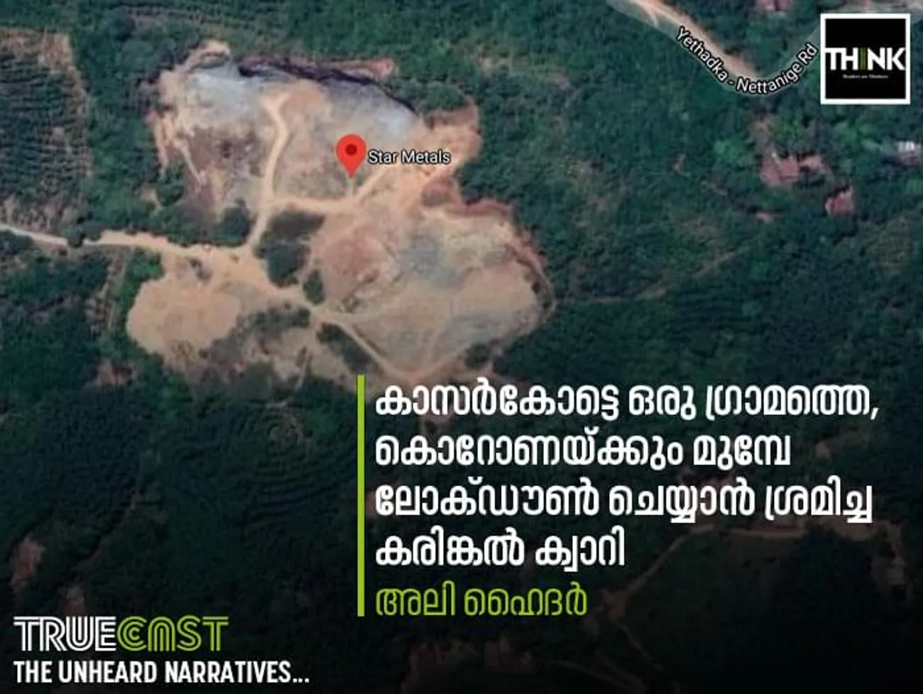 കാസർഗോഡ് നിന്നും 34 കിലോ മീറ്റർ അകലെ ബെള്ളൂർ പഞ്ചായത്തിൽ ദൊംപത്തടുക്ക എന്ന പ്രദേശത്ത് സകല നിയമങ്ങളും കാറ്റിൽ പറത്തി പ്രവർത്തിച്ച് കൊണ്ടിരിക്കുന്ന കരിങ്കൽ ക്വാറിയെ കുറിച്ച്, രാഷ്ട്രീയക്കാരുടെയും ഉദ്യോഗസ്ഥരുടെ ഒത്താശയോടെ നടക്കുന്ന സംഘടിത കൊള്ളയെ കുറിച്ച്, അലി ഹൈദർ തയാറാക്കിയ റിപ്പോർട്ട്.