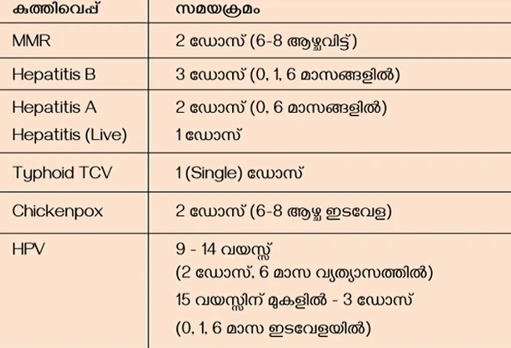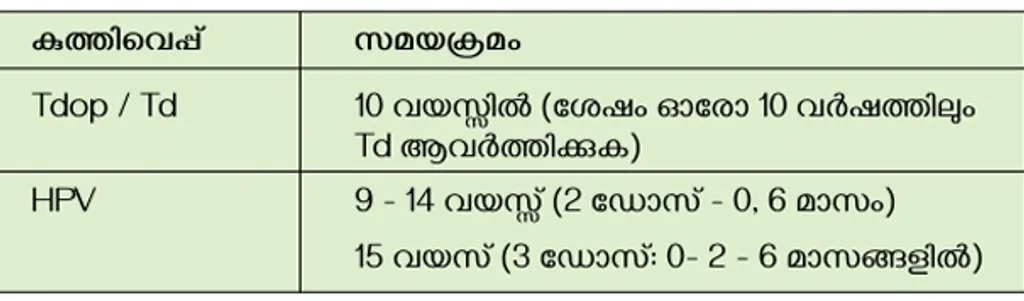 കൗമാരപ്രായക്കാർക്ക് മാത്രമായി നൽകുന്ന വാക്സിനുകളാണ് Tdap/ Td യും, ഗർഭാശയമുഖ കാൻസറിനെതിരായ HPV ( Human Papilloma Virus) വാക്സിനും.