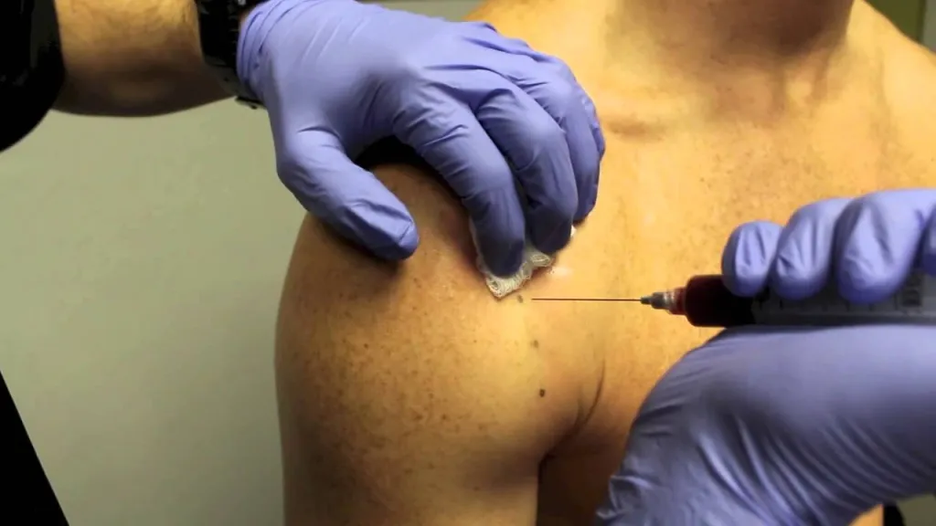 പരിക്കിന്റെയും തേയ്മാനത്തിന്റെയും പുനരുീവന ചികിത്സയിൽ (regenerative treatment) പങ്കുവയ്ക്കുന്ന വളരെ പ്രധാനപ്പെട്ട ചികിത്സാ രീതിയാണിത്. റൊട്ടേറ്റർ സ്‌നായുക്കളുടെ ചെറിയ പരിക്കുകളും തേയ്മാനങ്ങളും ഫലവത്തായി പരിഹരിക്കാൻ ഈ ചികിത്സ കൊണ്ട് സാധിക്കും. കായികതാരങ്ങളിലെ പരിക്കുകൾ ഭേദമാക്കാൻ ഇവ വളരെയധികം സഹായിക്കുന്നു. രോഗിയുടെ രക്തം തന്നെയാണ് ഇവിടെ ഉപയോഗിക്കുന്നത്. രക്തം പ്രത്യേക രീതിയിൽ സെൻട്രിഫ്യൂജ് ചെയ്ത് പ്ലേറ്റ്‌ലെറ്റ് കലകൾ കൂടുതലുള്ള പ്ലാസ്മ വേർതിരിച്ചെടുത്ത് പരിക്ക് പറ്റിയ ഭാഗങ്ങളിൽ അൾട്രാസൗണ്ട് മെഷീന്റെ സഹായത്തോടെ ഇൻജെക്ഷൻ ചെയ്യുന്നു. ഇത് പരിക്ക് പറ്റിയ സ്‌നായുളെ പുനരുജ്ജീവിപ്പിക്കുന്നു.