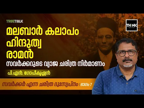മലബാർ കലാപം വിഷയമാകുന്ന നോവലിലൂടെയും ഹിന്ദുത്വ എന്ന പുസ്തകത്തിലൂടെയും രാമൻ എന്ന കഥാപാത്രനിർമിതിയിലൂടെയും എങ്ങനെയാണ് സവർക്കർ വ്യാജമായ ചരിത്ര നിർമിതി നടത്തിയത് എന്നും അതിനെ പ്രത്യയശാസ്ത്രപരമായ അടിത്തറയാക്കി മാറ്റിയത് എന്നും വിശദീകരിക്കുകയാണ് പി.എൻ. ഗോപീകൃഷ്ണൻ. "സവർക്കർ എന്ന ചരിത്രദുഃസ്വപ്നം" പ്രഭാഷണ പരമ്പരയുടെ ഏഴാം ഭാഗം.