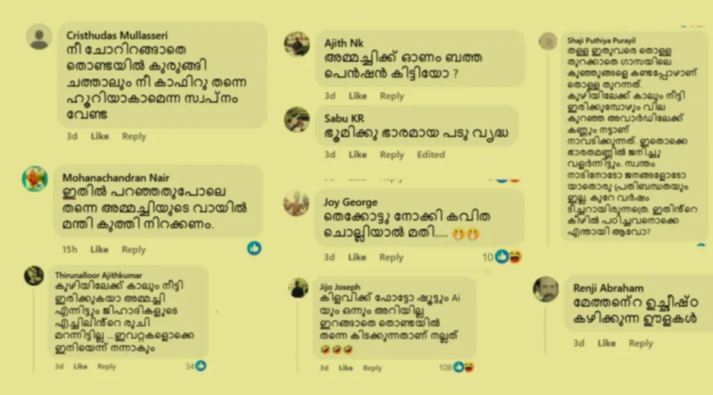 ലീലാവതി ടീച്ചർക്കെതിരെയുള്ള ഹിന്ദുത്വവാദികളുടെ ആക്രമണം അപ്രതീക്ഷിതമേ അല്ല. ടീച്ചർ ജീവിതകാലം മുഴുവൻ വിശാലഹിന്ദുചിന്തയിലും ചര്യയിലുമാണ് ചെലവഴിച്ചതെന്നൊന്നും പറഞ്ഞിട്ട് കാര്യമേ ഇല്ല. അതിന് സാമൂഹ്യമാദ്ധ്യമഗുണ്ടകളും ശശികലയെപ്പോലുള്ളവരും പുല്ലുവില കല്പിക്കുന്നില്ലെന്ന് പണ്ടേ വ്യക്തമാണ്. ട്രോളുകളുടെ ഭാഷ, അവർ ഏതു പാർട്ടിക്കാരുടേതാണെങ്കിലും, ഇതു തന്നെയാണ് - മറ്റൊരു അഭിപ്രായം പറയുന്നവരെ ഒതുക്കാൻ വേണ്ടതെന്നു തോന്നുന്ന തെറി പറയാൻ അവർക്കു മടിയില്ല.