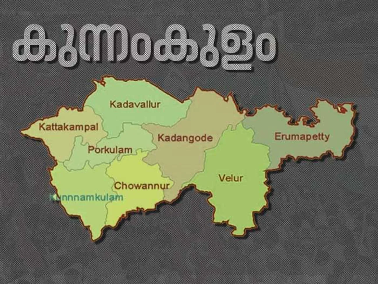 കുന്നംകുളം നഗരസഭയും ചൊവ്വന്നൂർ, എരുമപ്പെട്ടി, കടങ്ങോട്, കടവല്ലൂർ, കാട്ടകാമ്പാൽ, പോർക്കുളം, വേലൂർ പഞ്ചായത്തുകളും അടങ്ങിയതാണ് മണ്ഡലം.