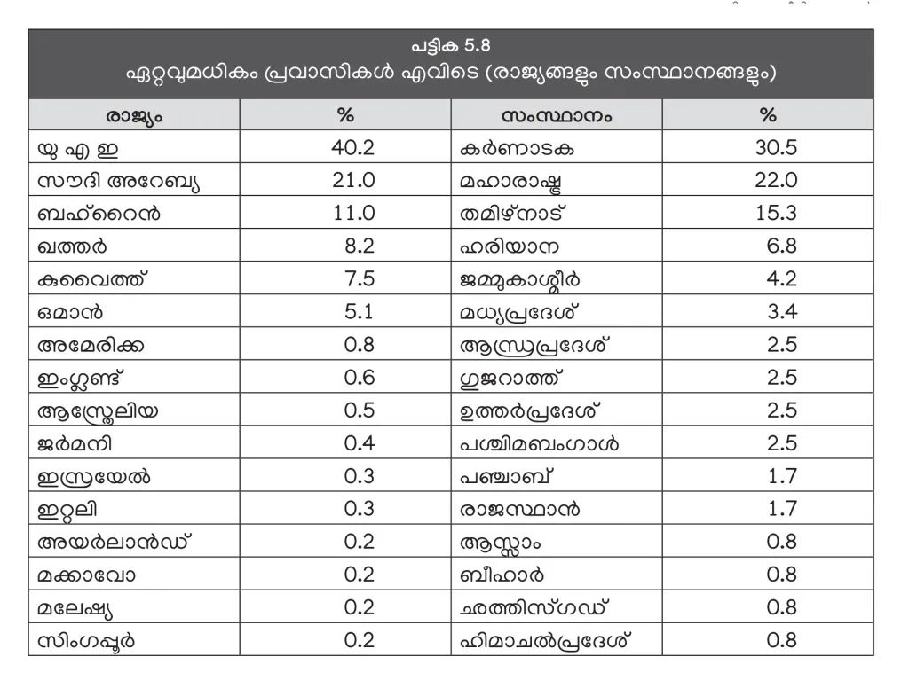 കേരളത്തിൽനിന്ന് ഇതര സംസ്ഥാനങ്ങളിൽ പോയി പണിയെടുക്കുന്നവർ കൂടുതലുള്ളത് ദരിദ്രരാണ്.