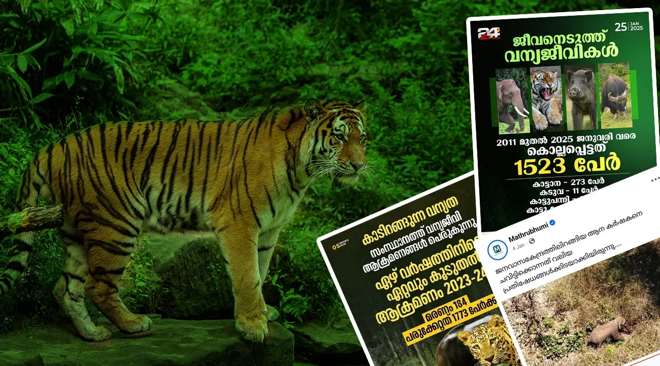 2011 മുതൽ 2025 വരെയുള്ള കാലയളവിൽ വന്യജീവി ആക്രമണങ്ങളിൽ 1523 പേർ മരിച്ചെന്നും അതിൽ കാട്ടാന കാരണം 273 / കടുവ 11 / കാട്ടുപന്നി 63 / കാട്ടുപോത്ത് 9 പേർ വീതം എന്നിങ്ങനെയും വിശദമായി അടയാളപ്പെടുത്തിയിരുന്നു. എന്നാൽ, 24 ന്യൂസ് പറഞ്ഞ 2011 മുതൽ 2025 ജനുവരി 24 വരേക്കും 1149 പേരാണ് പാമ്പ് കടിയേറ്റ് മരിച്ചത്. 1149 മരണങ്ങളെ ഒളിപ്പിച്ച് നിർത്തി ഗൂഢലക്ഷ്യത്തോടെ തങ്ങൾക്ക് ആവശ്യമുള്ളവ മാത്രം ചേർത്ത് കാർഡ് അടിച്ചിറക്കുകയാണ് ചാനൽ ചെയ്തത്.