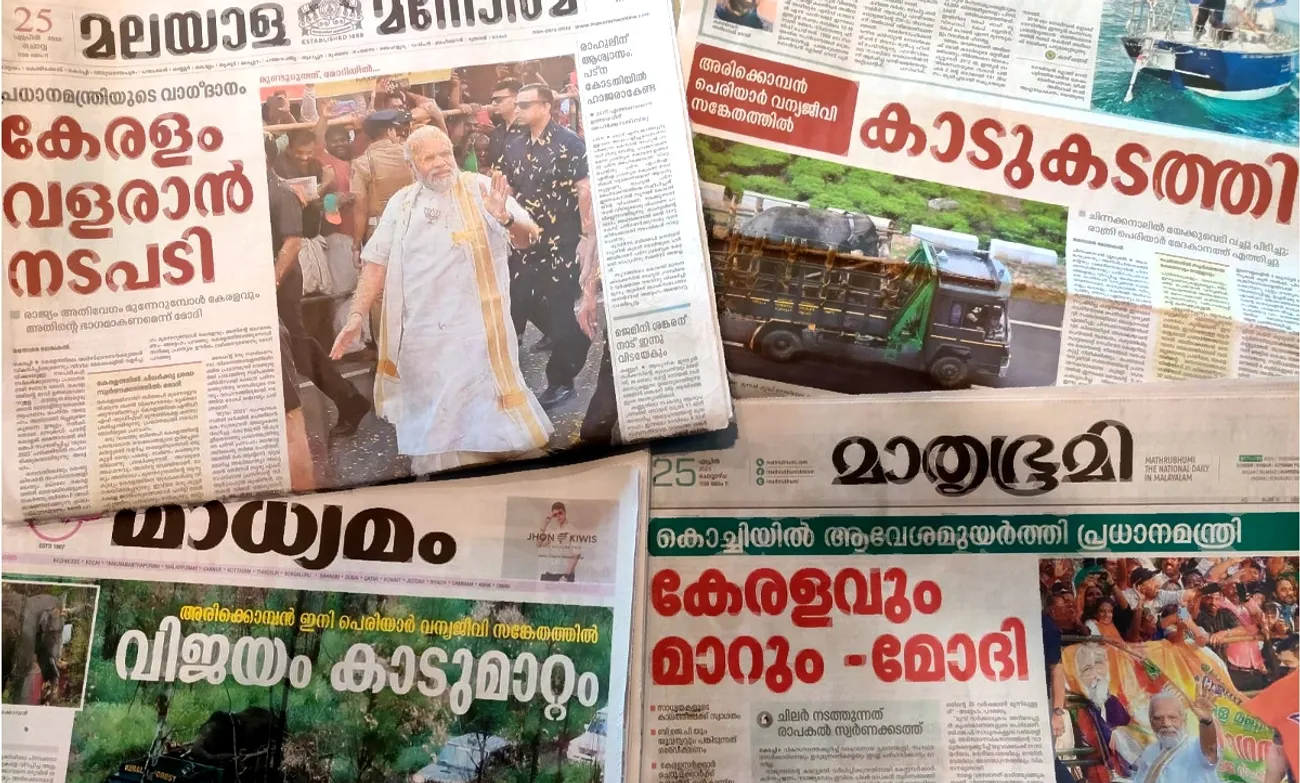 പ്രധാനമന്ത്രി നരേന്ദ്ര മോഡിക്ക് പത്രങ്ങളെല്ലാം മാസ് എന്ട്രി കൊടുത്തു. ചിലര് ആദര ഭക്തി മൂലം. മറ്റുചിലര് ഭക്ത്യാദരപൂര്വ്വം. ഇനിയും വേറെ ചിലര് ഭയാദരപൂര്വം. മലയാളത്തില് പ്രചാരത്തില് മുകളില് നില്ക്കുന്ന നാലു പത്രങ്ങളില് മൂന്നെണ്ണത്തിനും (യജമാന ഭക്തിയെ വെല്ലുന്ന അടിമ നൈതികതയോടെ മൂന്നാം പത്രം) ഇനി കേരളം വികസനത്തിന്റെയെല്ല ‘വികസന വേഗ’ ത്തിന്റെ വഴിയിലാണെന്ന് ഉറപ്പായും മനസിലായി!