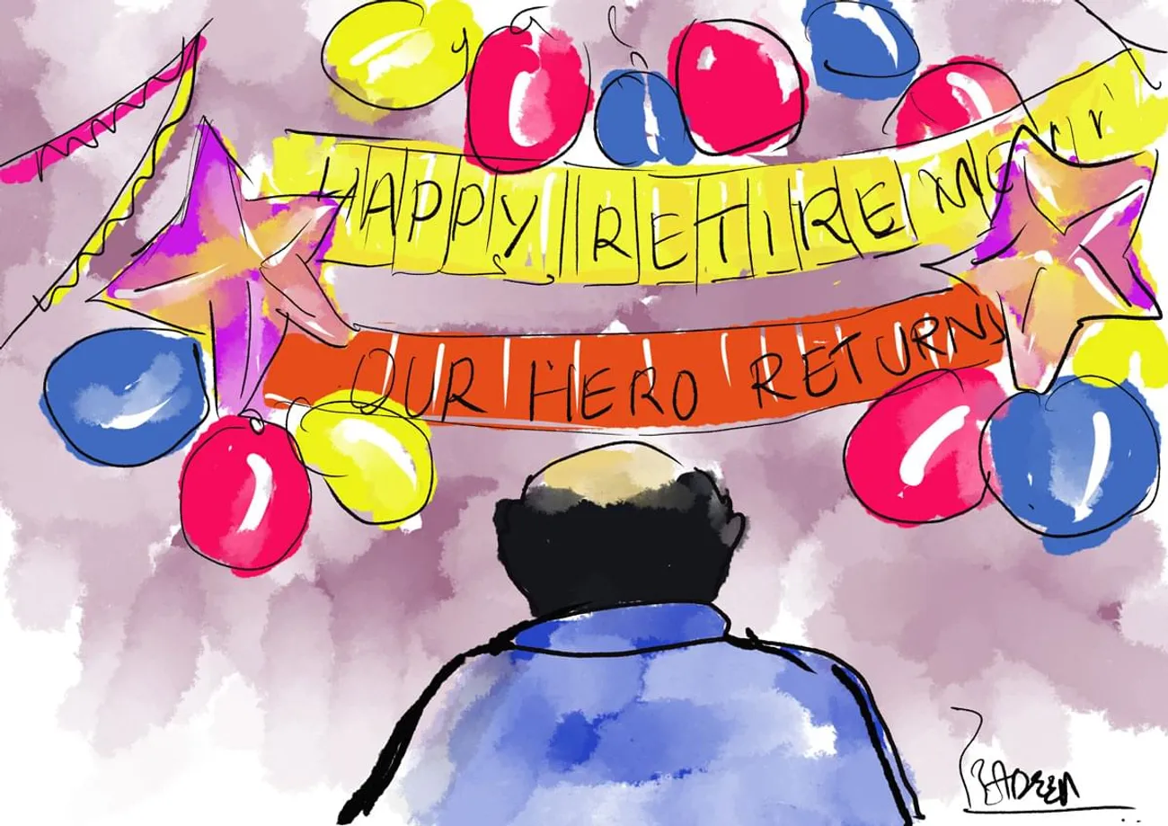 അവരെന്നെ വല്ലാതെ ഞെട്ടിച്ചുകളഞ്ഞു.‘Our Hero returns' എന്നാണ് അവിടെ എഴുതിവച്ചിരുന്നത്.