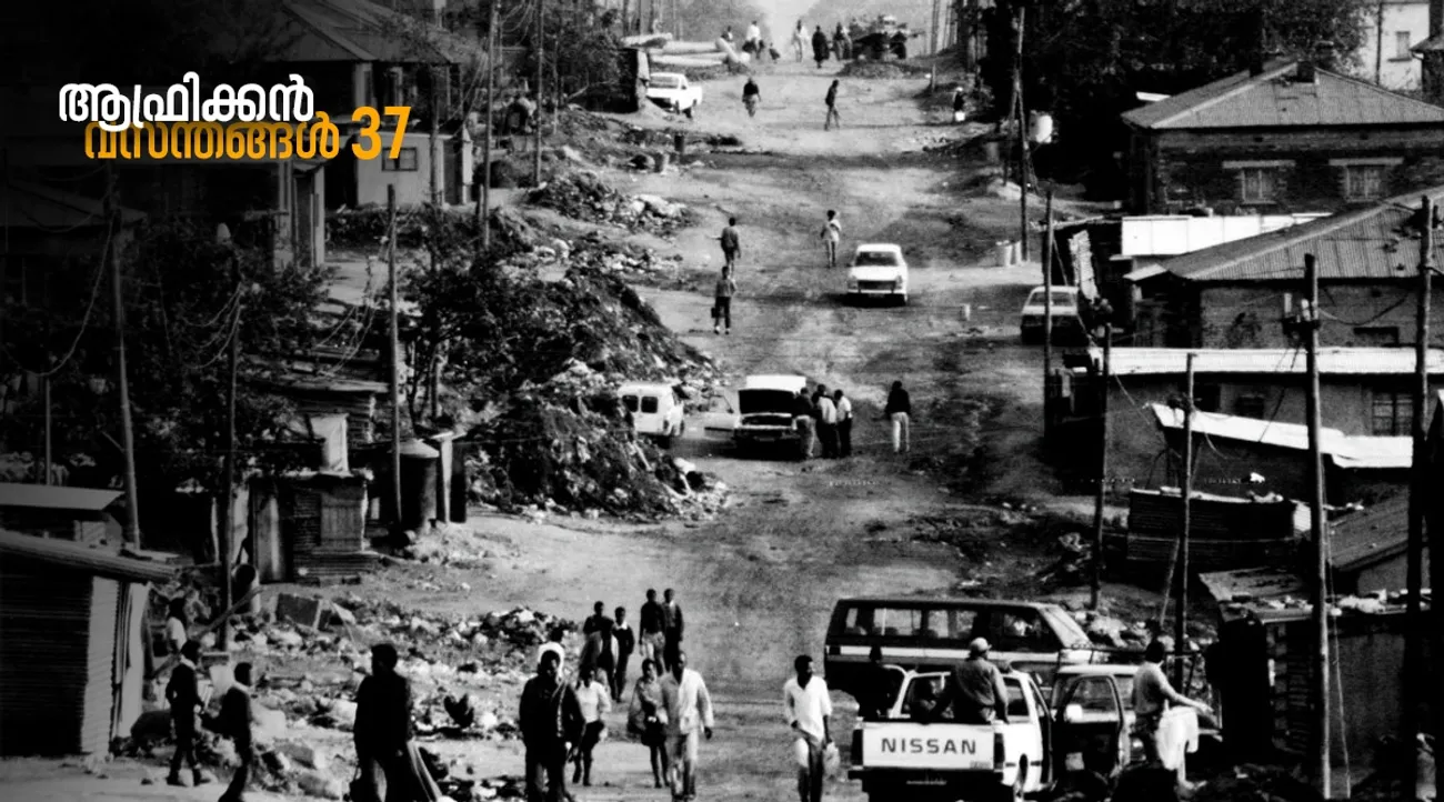 അത്ഭുതകരമെന്നോണം അതോടെ ലാൻഡ് സ്കെയ്പും ഭൂമിയുടെ ‘ആംബിയെൻസും’ പൊടുന്നനവേ മാറിമറിഞ്ഞു. പ്രസന്നമായ പച്ച വിരിച്ച കുന്നിൻചെരിവുകൾ ഇരുൾ കലർന്ന പച്ചപ്പായി മാറുന്നു. കാർമേഘങ്ങളില്ലെങ്കിലും ആകാശത്തിന്റെ നിറം മങ്ങുന്നു. ‘ബാന്റുസ്താനു’കളിൽ തളച്ചിടപ്പെട്ട മനുഷ്യരുടെ ജീവിതത്തിന്റെ പ്രതിഫലനങ്ങൾ. ബസിന്റെ ജനാലയിൽ കൂടി ഞാൻ കണ്ടു, വെള്ളം കൊണ്ടുവരാൻ വലിയ ‘ജെറി കാനു’കളുമായി ഓടിയകലുന്ന കൊച്ചു പെൺകുട്ടികളെ; അകലെ നിഴൽരൂപങ്ങളായി ആട്ടിൻപറ്റങ്ങളെ ആലയിലേക്ക് നയിക്കുന്ന ഇടയബാലന്മാരെ; വിറകുകെട്ടുകൾ തലച്ചുമടാക്കി കുടിയിടങ്ങളിലേക്ക് നടന്നകലുന്ന പെൺകിടാങ്ങളെ. അന്തരീക്ഷം മങ്ങിയിട്ടും വൃത്താകൃതിയിലുള്ള തങ്ങളുടെ കുടിലുകളിൽ ഒരു തിരി തെളിക്കാൻ ധൈര്യമില്ലാത്ത ഒരു സമൂഹത്തെ. ആദ്യ കാഴ്ചയിൽത്തന്നെ ഉള്ളു പൊള്ളിക്കുന്ന ദൃശ്യങ്ങൾ. അധികം വൈകും മുൻപ് ദക്ഷിണാഫ്രിക്കയുടെ ലാൻഡ് സ്കെയ്പ് നക്ഷത്രപ്പൊട്ടുകൾ നിറഞ്ഞ, ഭൂമിയിലെ ആകാശമായി തിളങ്ങുമെന്ന് ഞാൻ പ്രതീക്ഷിച്ചു.