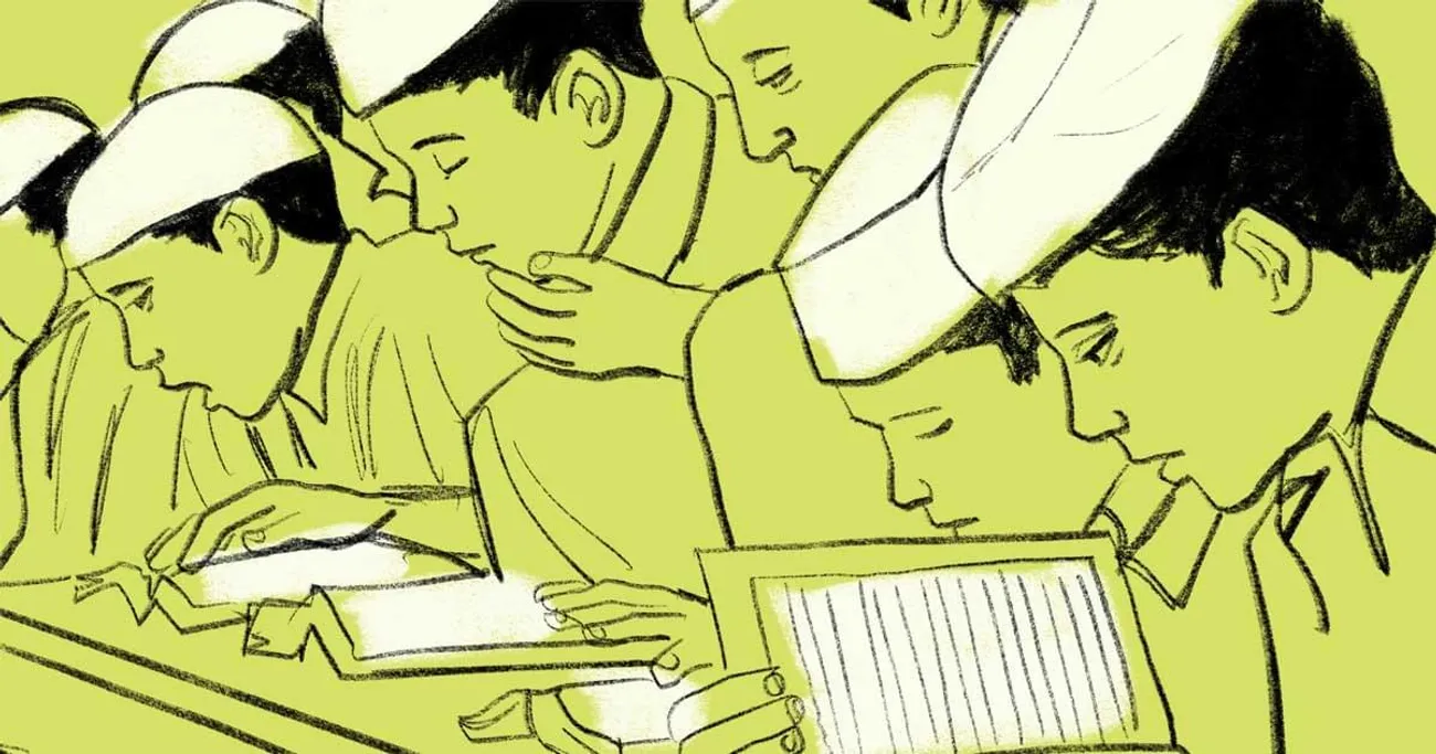 തലമറയ്ക്കൽ സുന്നത്താണെന്നും തൊപ്പി വെക്കൽ മുസൽമാന്റെ കടമയാണെന്നും ഉസ്താദ് ഉറപ്പിച്ചു പറഞ്ഞതിനാൽ ഞാനും തൊപ്പി ഊരിയില്ല. തൊപ്പിയിട്ട് സ്കൂളിലേക്ക് പോവുന്ന കുട്ടികൾ നാട്ടുകാർക്ക് ഒരു കൗതുകക്കാഴ്ചയായി. കൂക്കി വിളികളുടെ അകമ്പടിയോടെയാണ് ഞങ്ങൾ ക്ലാസ് മുറിയിലേക്ക് അന്ന് കടന്നത്. കൂവുന്നവരുടെ കൂട്ടത്തിൽ ആബിദയും ഉണ്ട്. ക്ലാസ് മുറിയിലെ ആ ബഹളത്തിലേക്കാണ് പൊന്നഴകി ടീച്ചർ വന്നത്. ആദ്യം ഒന്ന് അന്തം വിട്ടെങ്കിലും തൊപ്പി ഊരി വെക്കാൻ അവർ ഞങ്ങളോടു പറഞ്ഞു. അവരുടെ കയ്യിലും ചൂരലുണ്ട്. ഉസ്താദിന്റെ കയ്യിലും ചൂരലുണ്ട്. ആ രണ്ട് ചൂരലുകൾക്കും നടുവിൽ ഞാനെന്ന കുട്ടി നിസ്സഹായനായി നിന്നു.