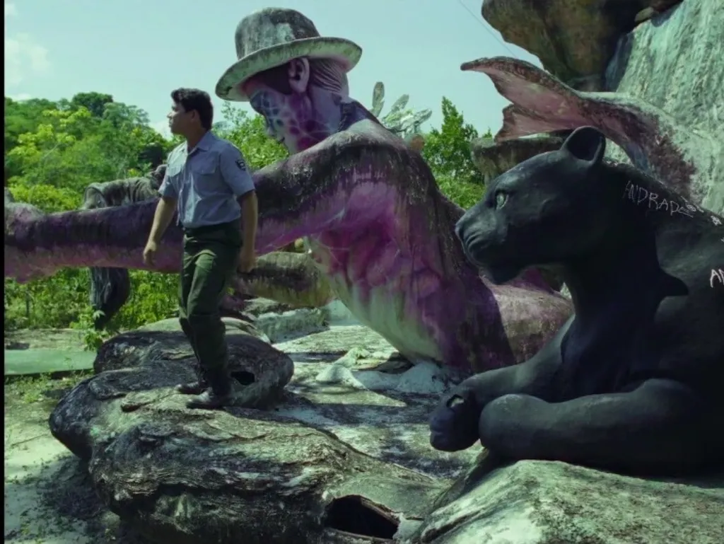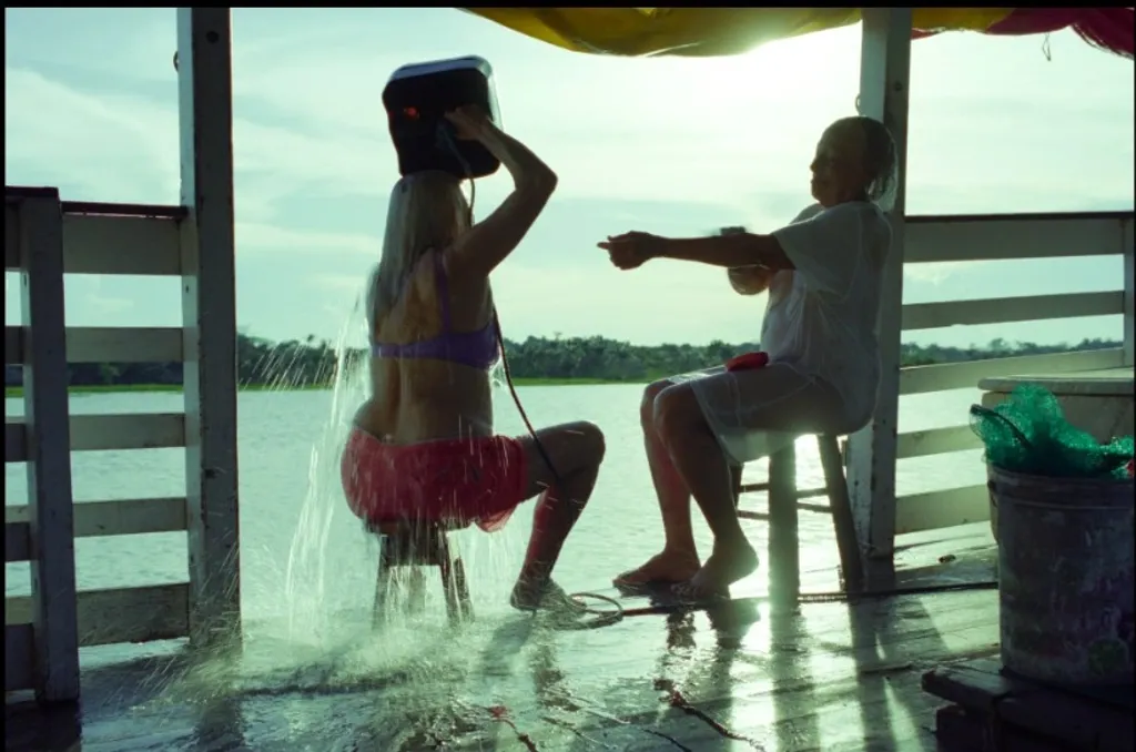 This structure enables the film to shift its emotional weight onto supporting figures, most notably the forlorn, crusty riverboat captain, Cadu (Rodrigo Santoro). Santoro's portrayal, though brief, is remarkable, creating an immense gravitational pull. We feel a strong desire to learn more about his profound loneliness and become invested in his untold story. A scene of profound, quiet beauty captures Cadu lying on an inflated tube, listening to music from floating speakers an image that suggests a profoundly indigenous version of a modern, relaxing spa or pool. Although the composition itself is visually perfect and serene, Cadu's face conveys an almost unbearable depth of loneliness, creating a perfect, poignant tension between the environment's utopian quality and the protagonist's internal desolation.