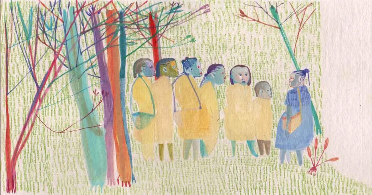 മേരി തന്റെ പുതിയ കൂട്ടുകാരെ കണ്ട് പല്ലുകൾ മുഴുവൻ മുളച്ചിട്ടില്ലാത്ത മോണ കാണിച്ച് ചിരിച്ചു. അതുവരെ അവൾക്കുണ്ടായിരുന്ന കൂട്ടുകാർ സൂപ്പി എന്നു അവൾ വിളിക്കുന്ന കുഞ്ഞുതലയിണയും പ്ലേറ്റ് എന്നു പേരുള്ള കുഞ്ഞു പാത്രവും മുറ്റത്തുള്ള മൈലാഞ്ചി ചെടിയുമായിരുന്നു. സൂപ്പിക്ക് പുരികവും കണ്ണും മൂക്കും വായയും മേരിയാണ് വരച്ച് നൽകിയത്. അതിനാൽത്തന്നെ വലതു കവിളിന്റെ മൂന്നിരട്ടിയായിരുന്നു സൂപ്പിയുടെ ഇടതു കവിൾ. അതിൽ തല ചായ്ച്ച് മേരിയുറങ്ങി. അതിനൊപ്പം സാറ്റുകളിച്ചും മൈലാഞ്ചി ചെടിയോട് അടിപിടി കൂടിയും ദേഷ്യം വരുമ്പോൾ കൈകൾ പോലുള്ള വള്ളികളിൽ നിന്നും ഇലകൾ ഊരിയെടുത്തും വായിലിട്ട് ചവച്ചരച്ചും അവയോട് കുന്തിച്ചിരുന്നു സംസാരിച്ചും മേരി വളർന്നു.