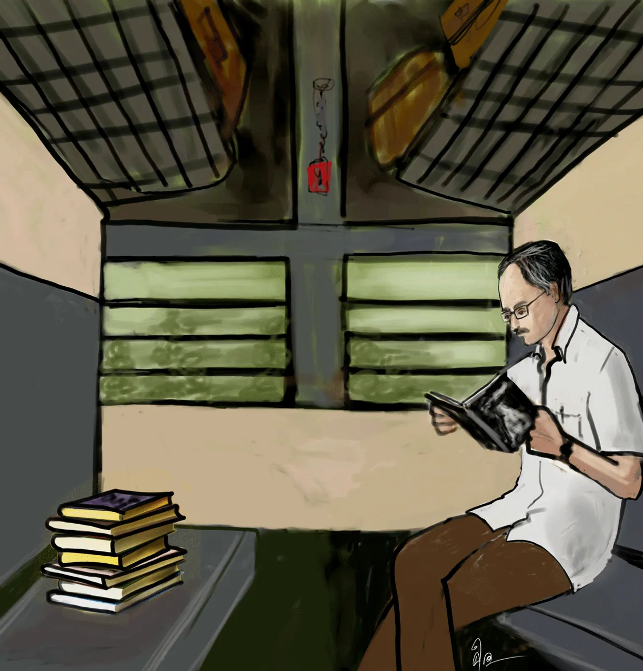 സ്റ്റേഷനുമുന്നിലെ ആൾത്തിരക്കുള്ള ഒരു ബസ് സ്റ്റോപ്പിൽ നിൽക്കുകയാണ്. അവിടത്തെ ഇരുമ്പുകൊണ്ടുള്ള കൈവരിയിൽ പിടിച്ചുനിന്ന് എതിർഭാഗത്തുള്ള രാജീവ് ഗാന്ധി മെമ്മോറിയൽ ഗവൺമെൻറ് ജനറൽ ഹോസ്പിറ്റലിന്റെ കെട്ടിടസമുച്ചയത്തിലേക്ക് നോക്കുന്നു. അമ്പതുവർഷങ്ങൾക്കു മുമ്പാണ് അദ്ദേഹം അവിടത്തെ സർജിക്കൽ വാർഡിന്റെ ജനലിലൂടെ സെൻട്രൽ റെയിൽവേ സ്റ്റേഷന്റെ ചുവന്ന മിനാരങ്ങൾ കണ്ടുനിന്നത്.