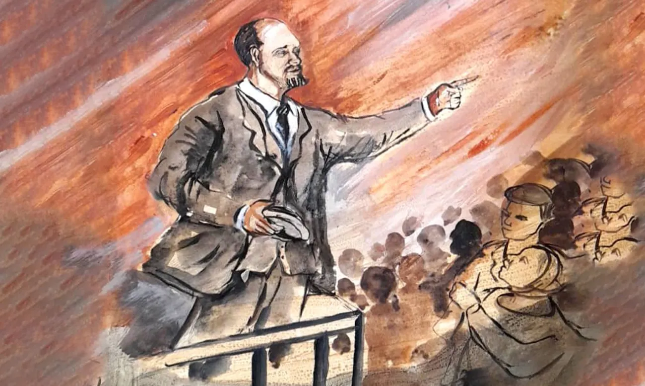 പെട്ടെന്നൊരാൾ കൈകൾവീശി പ്രത്യക്ഷനാകുന്നത് ജനങ്ങൾ കണ്ടു. ആ സംഭാഷണം തുടങ്ങിയപ്പോൾ ആരവം നിശ്ശബ്ദവുമായി. തങ്ങളുടെ ജീവിതത്തിലേക്കുള്ള പാതകളിൽ വായുവും ജലവും കൊണ്ടുവരുന്ന ഒരാളെയെന്നപോലെയാണ് അവർ ലെനിനെ നോക്കിയത്. ചുറ്റുമുള്ളവർ തന്റെ ചൂണ്ടുവിരലിലേക്കാണ് ശ്രദ്ധിക്കുന്നതെന്നും അവിടെനിന്നും പുതിയ നിശ്ചയങ്ങൾ സംഭവിക്കേണ്ടതുണ്ടെന്നും ലെനിന് അറിയാമായിരുന്നു. ഊണും ഉറക്കവും വെടിഞ്ഞ്; തല പുകച്ച്, ദുർഗ്ഗമപഥങ്ങളിലൂടെ സഞ്ചരിച്ച് മുന്നോട്ടുപോകുന്നത് വിലാപങ്ങളുടെ അർദ്ധരാത്രിയിൽ നിന്നുള്ള ജനങ്ങളുടെ വിടുതലിനുവേണ്ടിയാണെന്ന് ലെനിന് നിശ്ചയമുണ്ടായിരുന്നു.