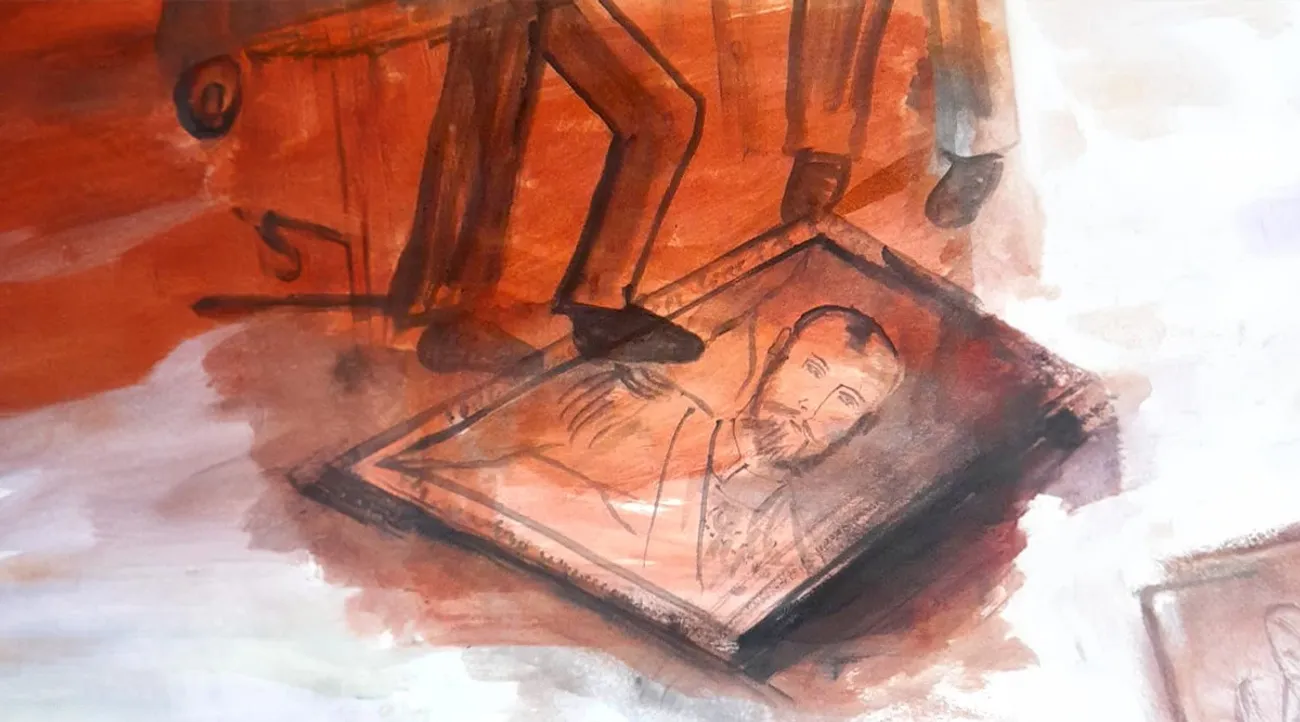 സാർ ചക്രവർത്തിയുടെ ഛായാചിത്രം ജനക്കൂട്ടത്തിനിടയിലേക്ക് വലിച്ചെറിഞ്ഞുകൊടുത്തത് ലെനിനായിരുന്നു. പല വാക്കുകൾ കോർത്ത് അധികാരത്തിന്റെ നടുത്തളങ്ങളെ ഇരുട്ടറയുമായി ലെനിൻ ഉപമിച്ചു. സാർചിത്രങ്ങളുടെ പുറംചട്ടകൾ ചിതറിവീണു. അതിനു മുകളിലൂടെ സ്ത്രീകൾ റഷ്യൻ നാടോടിഗാനമാലപിച്ച് മുന്നേറി. ചുമരിലെ പല മുഖങ്ങളുള്ള ഘടികാരം നിലച്ചു. അലങ്കാരത്തിളക്കങ്ങളും, അപൂർവ്വങ്ങളിലപൂർവ്വമായ കൗതുകവസ്തുക്കളും, വിലമതിക്കാനാവാത്ത സ്ഫടികരൂപങ്ങളും ചിതറിവീണുകൊണ്ടിരുന്നു. നൂറ്റാണ്ടുകളുടെ പഴമയും സ്മരണയും ഇരമ്പുന്ന പലതും ജനങ്ങളുടെ ക്രോധാവേശത്തിൽ ഛിന്നഭിന്നമാകുന്നതു കണ്ട് ലെനിന്റെ മുഖം പ്രകാശപൂർണ്ണമായി. അവ ചരിത്രത്തിന്റെ മലിനത നിറഞ്ഞ ഇരുൾക്കയത്തിലേക്ക് തോണ്ടിയെറിഞ്ഞ് ലെനിൻ മുന്നേറിക്കൊണ്ടിരുന്ന ബൽഷെവിക്കുകൾക്ക് ഉത്തമമാതൃകയായി നിലകൊണ്ടു.