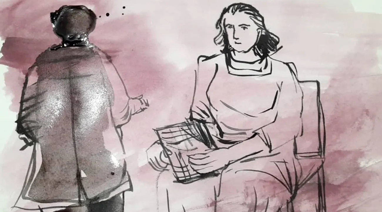 ക്രിസ്റ്റഫർ റീഡ് താനെടുത്ത കുറിപ്പുകളിലെ വയലറ്റ് മഷികൊണ്ട് അടിവരയിട്ട ചില ഭാഗങ്ങൾ ഇറീനയ്ക്ക് കാണിച്ചുകൊടുത്തു. അവിശ്വസനീയത ഇറീനയുടെ കണ്ണുകളിൽ ചാരനിറം പുരട്ടുന്നതാണ് പിന്നീട് കാണാനായത്.