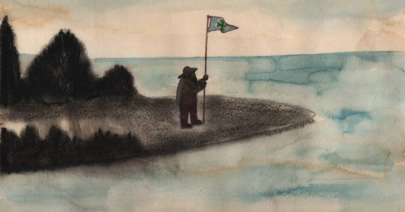 അവർ ഇതു വരെ കണ്ടിട്ടില്ലാത്ത, ഏതോ പക്ഷിച്ചിറകു പോലെ കാറ്റിൽ പാറിക്കളിക്കുന്ന സ്പെയിനിന്റെ വർണ പതാക ദ്വീപുവാസികൾ കൗതുകത്തോടെ നോക്കി നിന്നു.