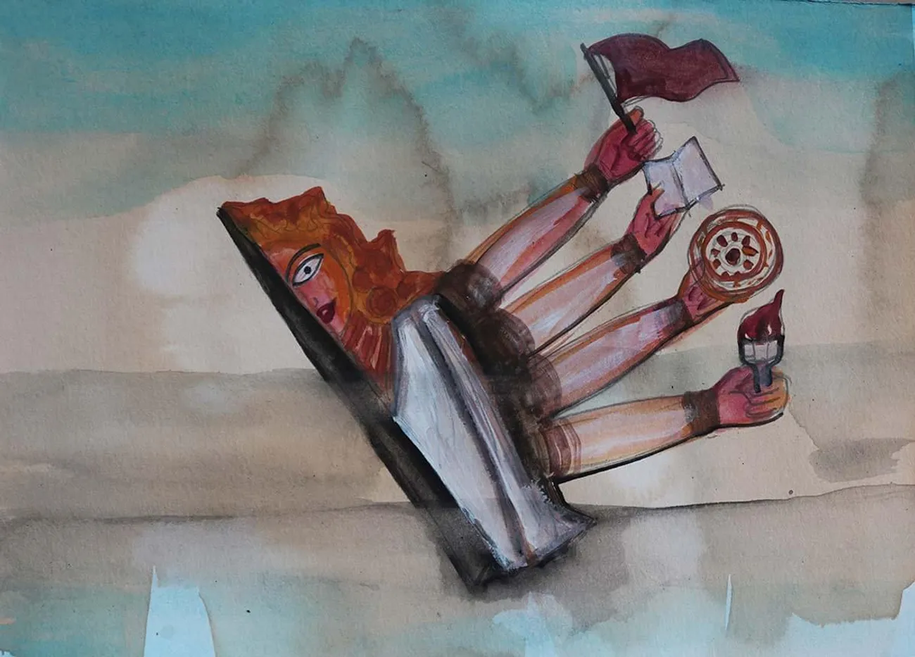ആൾ അവിടത്തെ അറിയപ്പെടുന്ന ആളായിരുന്നു. വലിയ കണ്ണുകളും ദീർഘമായ നെറ്റിയുമായി ആജാനുബാഹുവായ മനുഷ്യൻ. ത്രിശൂലത്തിന്റെ മാതൃകയിലുള്ള ഗെയിറ്റിൽ വെൽവെറ്റ് തോരണങ്ങൾ. സാമ്പ്രാണിയുടെയും മധുരപലഹാരങ്ങളുടേയും മണം. ‘സർവേ ജന സുഖിനോ ഭവന്തു’ അയാൾ അങ്ങനെ പറഞ്ഞുകൊണ്ട് അകത്തുപോയി ക്രീം നിറത്തിൽ ഷാൾ കഴുത്തിലുടെ അണിഞ്ഞു.