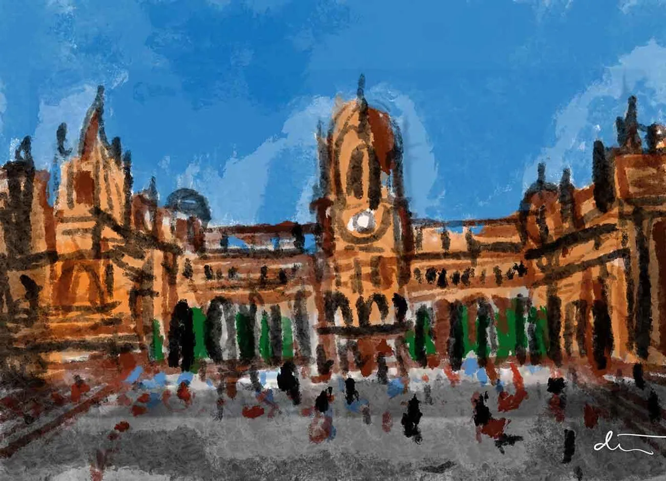 ഛത്രപതി ശിവജി ടെർമിന്സ് സ്റ്റേഷൻ. പഴയ വിക്ടോറിയ ടെർമിനസ്. സാൻഡ് സ്റ്റോണും ലയിം സ്റ്റോണും കൂടിച്ചേർന്ന് കിഴക്കിന്റെയും പടിഞ്ഞാറിന്റെയും ശിൽപ്പ സമന്വയാൽഭുതം. ഏകദേശം ഒരു ദീർഘചതുരത്തിന്റെ മൂന്നു വശങ്ങൾ പോലെയാണത്. നീളം കൂടിയ നടുഭാഗത്തെ മുഖ്യ കെട്ടിടത്തിന്റെ ഭിത്തിയിൽ ഏറ്റവും മുകളിലായി വെള്ള വട്ടത്തിൽ കറുത്ത സൂചികളുള്ള ഘടികാരം.