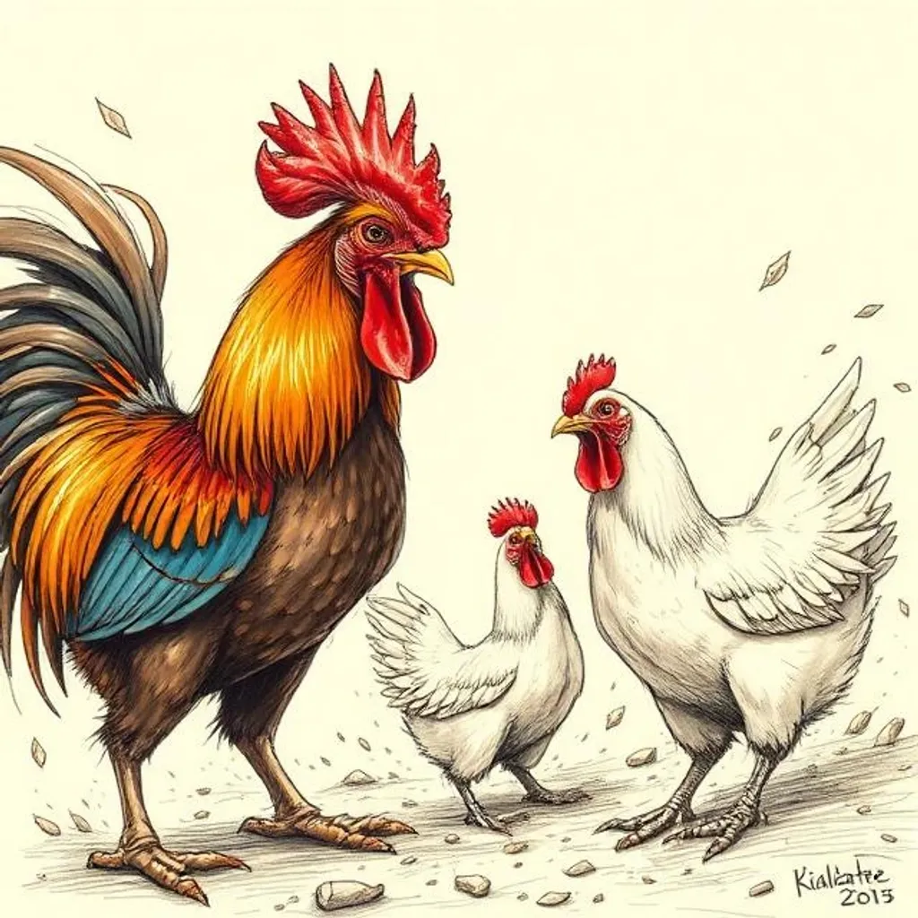 ഭാസ്കരന്റെ കണ്ണുകളിൽ മൂന്നിറച്ചിക്കോഴികളുടെയും രൂപം പ്രതിഫലിച്ചു. അവർ മൂന്നുപേരും ഒരുമിച്ചു ചാടി വന്ന് കീഴ്പെടുത്താനുള്ള നീക്കത്തിലാണെന്ന് അവൻ കണക്കു കൂട്ടി.