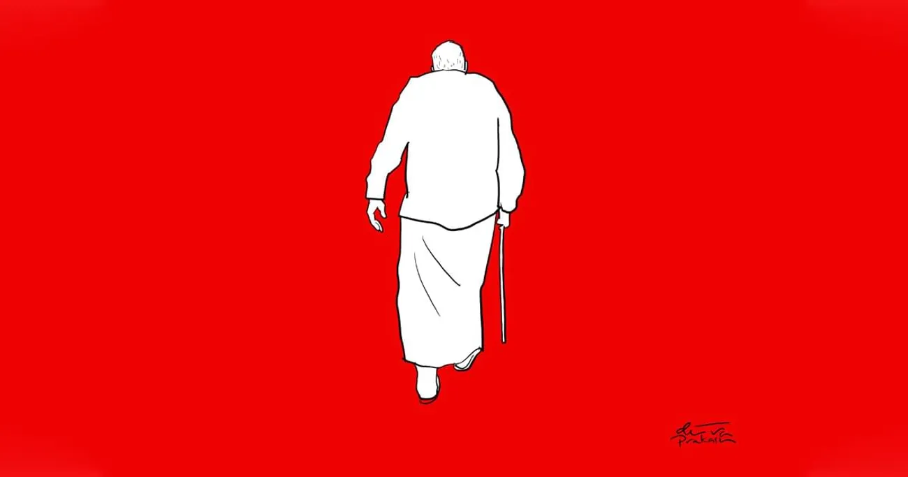 പാർട്ടിപ്രവർത്തനവുമായി നടക്കുന്ന സമയത്താണ് എന്റെ വൈഫ് ഗ്ലാഡിസ് മരിക്കുന്നത്. സഖാക്കൾ വീട്ടിലെത്തി ചെങ്കൊടി പുതപ്പിച്ചെങ്കിലും അവളെ ഞങ്ങളുടെ പള്ളിയിലാണ് അടക്കിയത്... അതൊക്കെ കഴിഞ്ഞിട്ട് കൊല്ലം കുറേയായി. പഴയ കാര്യങ്ങൾ ഓർക്കുമ്പോഴെല്ലാം എനിയ്ക്ക് നെഞ്ചിടിപ്പുകൂടും... സ്റ്റെല്ലയെന്നെ വിവേരാ ഡോക്ടറുടെ അടുത്ത് കൊണ്ടുപോയിരുന്നു. ഇയർബാലൻസിന്റെ തകരാറാണത്രെ... ഞാനിപ്പോൾ ഈവനിങ്ങിൽ മാത്രമേ പുറത്തേക്കിറങ്ങാറുള്ളൂ. ഞങ്ങളുടെ വില്ല മുതൽ തൊട്ടടുത്ത റിക്രിയേഷൻ ഗ്രൗണ്ടുവരെ നടന്നിട്ട് തിരിച്ചുപോരും. സൺഡേ ചർച്ചിന്റെ ഒരു ഗാതറിങ്ങുണ്ട്. സ്നേഹസമൂഹമെന്നാണ് പേര്. മകൾ നിർബന്ധിച്ച് ഫാമിലിമീറ്റിങ്ങിന് കൊണ്ടുപോകും. അവളാണ് എനിയ്ക്ക് റോസരി വാങ്ങിത്തന്നത്. ചൊല്ലേണ്ട രീതികളൊക്കെ മറന്നു. എന്നാലും പില്ലോയുടെ അടിയിലതുവെയ്ക്കും. ഈയിടെയായി അതവിടെയില്ലെങ്കിൽ ഒരു ഉറക്കക്കുറവ് തോന്നാറുണ്ട്.