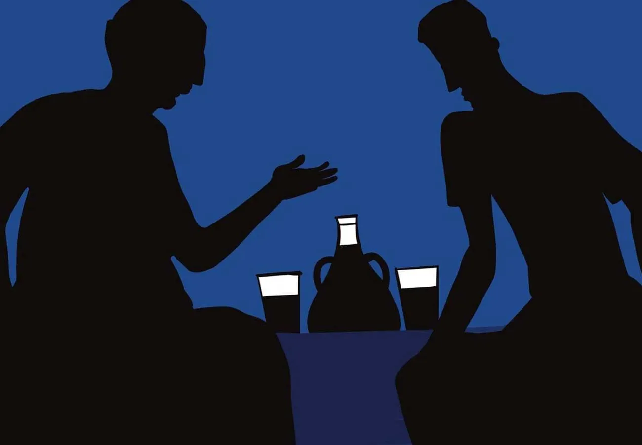 എത്തും പിടിയും കിട്ടാതെ തമ്പാച്ചൻ അൽപ്പനേരം നിന്നു. തമ്പാച്ചൻ അനുസരണയോടെ വീടിന്റെ പിന്നാമ്പുറത്തേക്ക് നടന്നു. തപ്പിനോക്കിയപ്പോൾ രണ്ട് ഗ്ലാസുകളും കിട്ടി. വീടിന്റെ ഉമ്മറത്തേക്കു വന്നപ്പോൾ അപ്പിച്ചായൻ വരാന്തയിലേക്കുള്ള പടിയിൽ ഇരിക്കുന്നു. തമ്പാച്ചനോട് അച്ചായൻ അടുത്തിരിക്കാൻ പറഞ്ഞു. അത്രയുമായപ്പൊഴെയ്ക്കും ഉള്ള പേടിയൊക്കെ തണുത്തതു പോലെ തമ്പാച്ചന് തോന്നിയിരുന്നു. അച്ചായനെ കൗതുകം വിടാതെ നോക്കിക്കൊണ്ട് തമ്പാച്ചൻ പടിയിലിരുന്നു. ഒരു കൈ കൊണ്ട് കുപ്പിയുടെ കഴുത്തിന് പിടിച്ച് മറ്റെ കൈകൊണ്ട് മുണ്ടിന്റെ കോന്തലയോടു കൂടി അച്ചായൻ കുപ്പിയുടെ തല ഊരി എടുത്തു. കുപ്പിക്കകത്തു നിന്നും പുളകം കൊള്ളിക്കുന്ന ഒരു മണം അവർക്കു ചുറ്റിലും പരന്നു. കുളിരു കോരി അപ്പിച്ചായനും തമ്പാച്ചനും മുഖാമുഖം നോക്കി. അച്ചായന്റെ കണ്ണുകൾ പാതി അടഞ്ഞു പോയിരുന്നു. അച്ചായൻ അതീവ ശ്രദ്ധയോടു കൂടി ഗ്ലാസുകളിലേക്ക് കുപ്പി ചെരിച്ചു. ഗ്ലാസുകളിൽ കടും കട്ട ചുവപ്പിലുള്ള ദ്രാവകം നുരഞ്ഞു. കുടിച്ചാലോ തമ്പാച്ചാ എന്ന വണ്ണം അച്ചായൻ തമ്പാച്ചനോട് ഒന്ന് തലയാട്ടി. കുടിക്കാം അച്ചായാ എന്ന് തമ്പാച്ചനും തലയാട്ടി. ഉൾപ്പുളകത്തോടെ രണ്ടു പേരും ഗ്ലാസുകൾ കൈയിലേക്കെടുത്തു