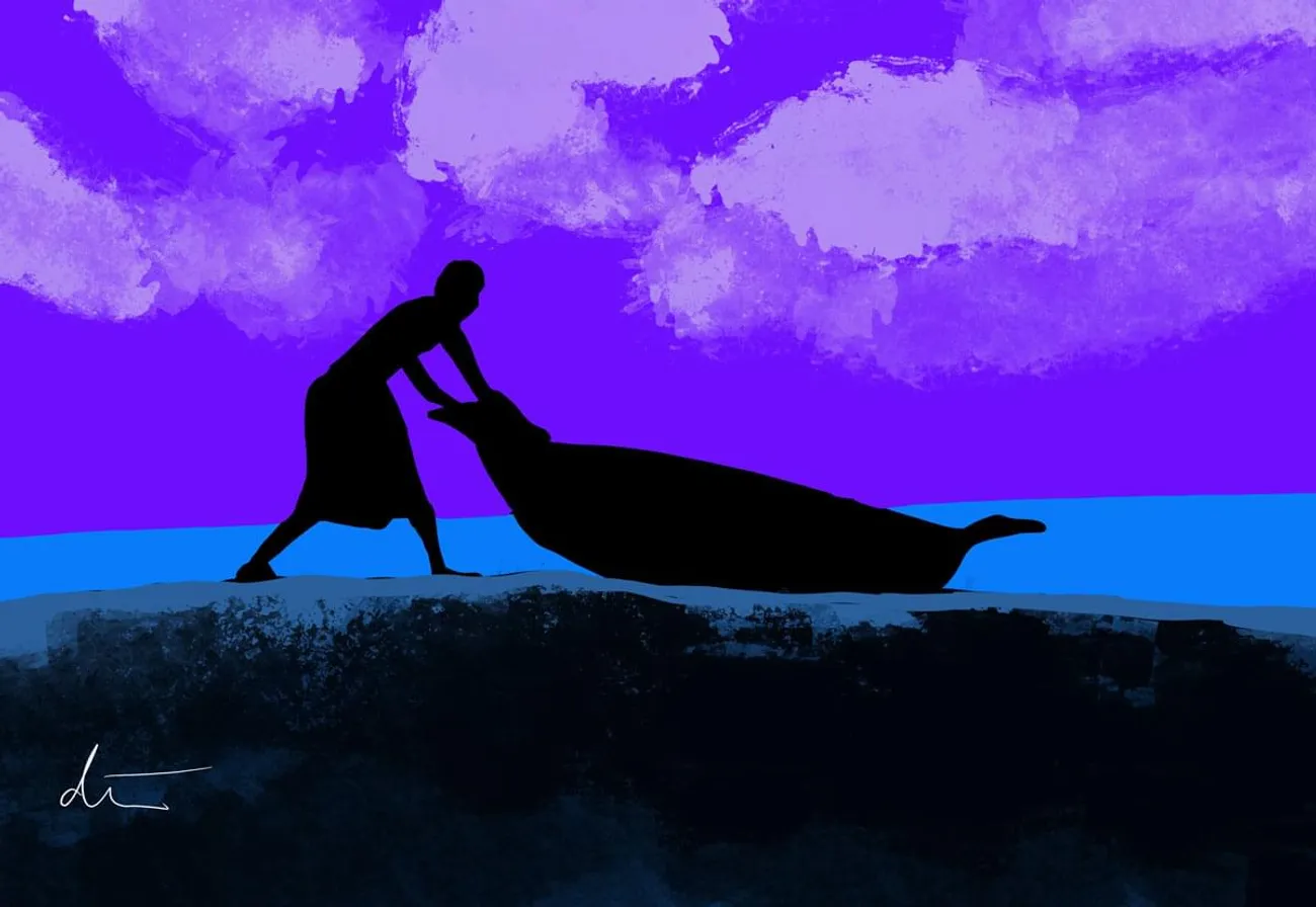 എന്നു തൊട്ടാണ് ഉൾക്കടലിൽ പോയി ഒരു വമ്പൻ സ്രാവിനെയും കൊണ്ട് വരണമെന്ന ഉൽക്കടമായ മോഹം അവനിലുദിച്ചതെന്നറിയാമ്മേല. തന്തയില്ലാത്തവനെന്ന് ലോകം മുഴുവൻ പറയുമെങ്കിലും അവനെ ജനിപ്പിച്ച ഒരു തന്തയുണ്ടാവുമല്ലോ. ചോദിക്കാനാവും മുന്നെ തള്ള ചത്തും പോയില്ലേ.ആരോരുമില്ലാത്തവന് ഉലകമേ തറവാട്. എന്തിനായിട്ടിങ്ങനെയൊരു ജന്മമെന്ന് നാഴികക്ക് നാല്പത് വട്ടം തന്നോട് തന്നെ ചോദിക്കാറുണ്ട്. ഭൂമിയിലേക്ക് തള്ളിവിട്ട് പൊയ്ക്കളഞ്ഞില്ലേ എന്ന് പരിഭവപ്പെടാറും ഉണ്ട്. ഇപ്പോ മുകളിലാകാശം താഴെ ഭൂമി. ഏതെങ്കിലുമൊരുത്തിയെ കൂടെ കെട്ടിക്കൂട്ടാമെന്ന് വെച്ചാൽ ഇങ്ങനെയൊരുത്തന്റെ കൂടെ പൊറുക്കാൻ പെണ്ണൊരുത്തി തയ്യാറാവണ്ടേ?