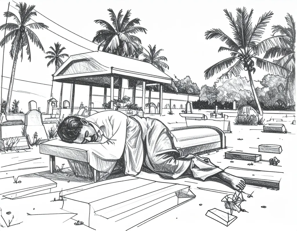 റാക്കു കുടിക്കാതെയും കഞ്ചാവ് വലിക്കാതെയും സെമിത്തേരിയിൽ വന്നിരിക്കാനാണ് കുട്ടിക്ക് ഇഷ്ടം. അന്നേരമാ കുട്ടിക്ക് ദൈവവിളി വരിക. പെരുന്നാളിന് ഗീവർഗീസ് പുണ്യാളന്റെ രൂപത്തിന് ചുറ്റും മാലബൾബ് കത്തും പോലെ മനസിൽ മുഴുവൻ ബൾബ് കത്തും. ചെന്തീ പോലൊരു മാലാഖയെന്ന റബേക്കയെ കാത്ത് പാതിരാ മുഴുവൻ കല്ലറയ്ക്കു മേൽ കിടക്കും.