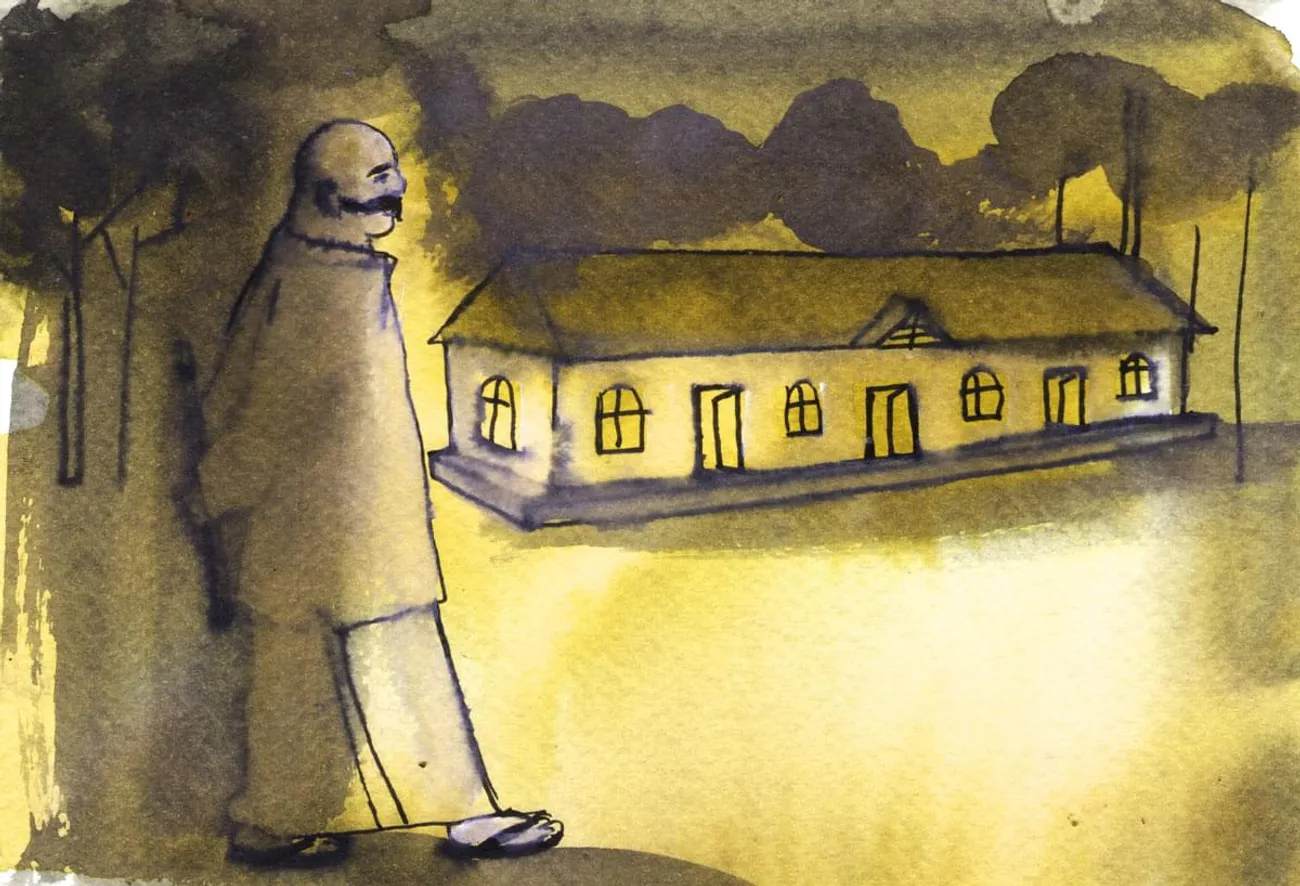 പടികൾ ഇറങ്ങി കൃഷ്ണപിള്ളസ്സാർ തിരിഞ്ഞുനോക്കാതെ നടന്നു.