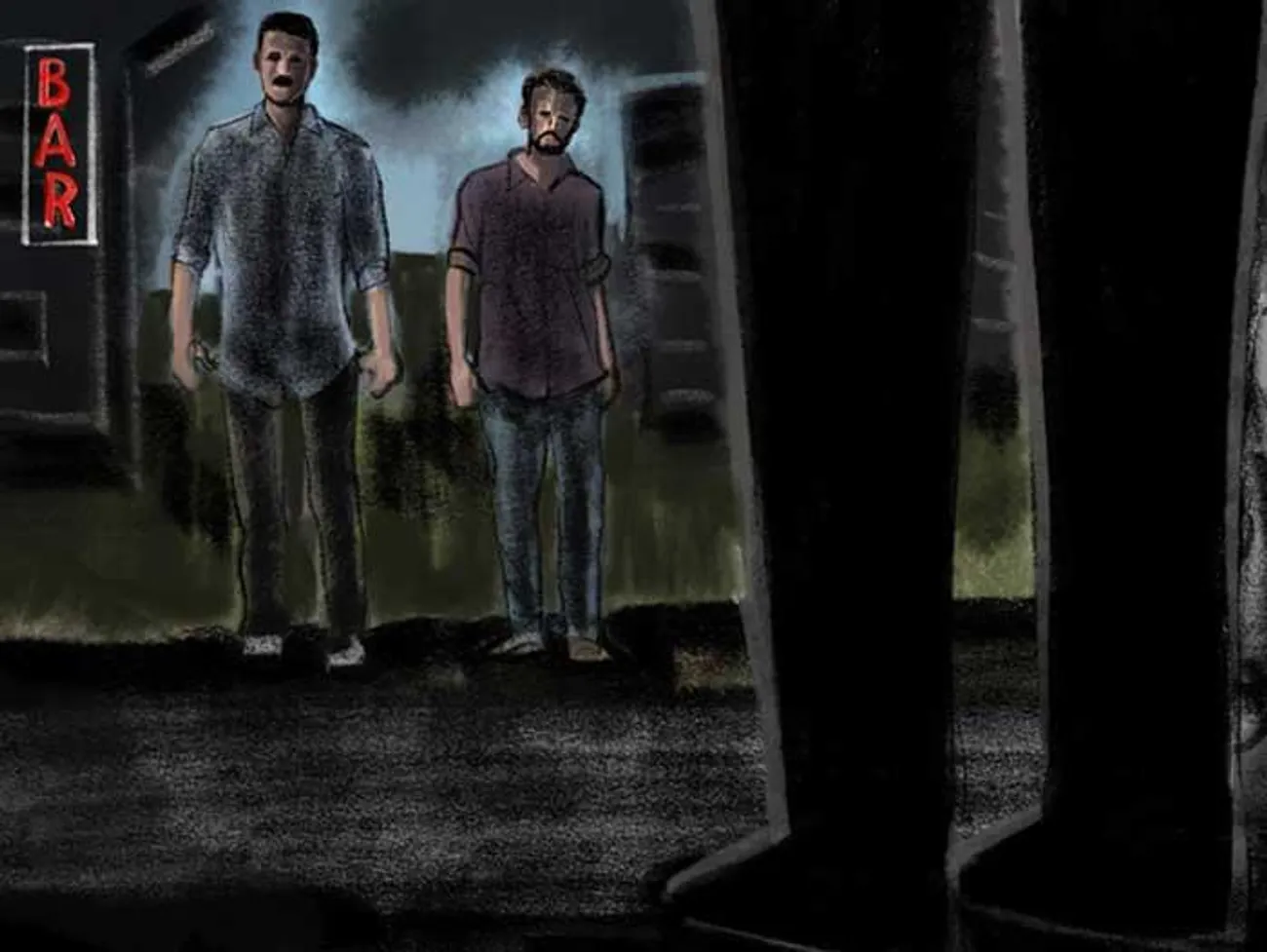 ബാറിന്റെ ഗേറ്റിന് വെളിയിൽ നിന്ന് സിഗരറ്റ് വലിക്കുന്നതിനിടയിൽ ജോഷി അയാളുടെ കഥ പറഞ്ഞു നിർത്തി.