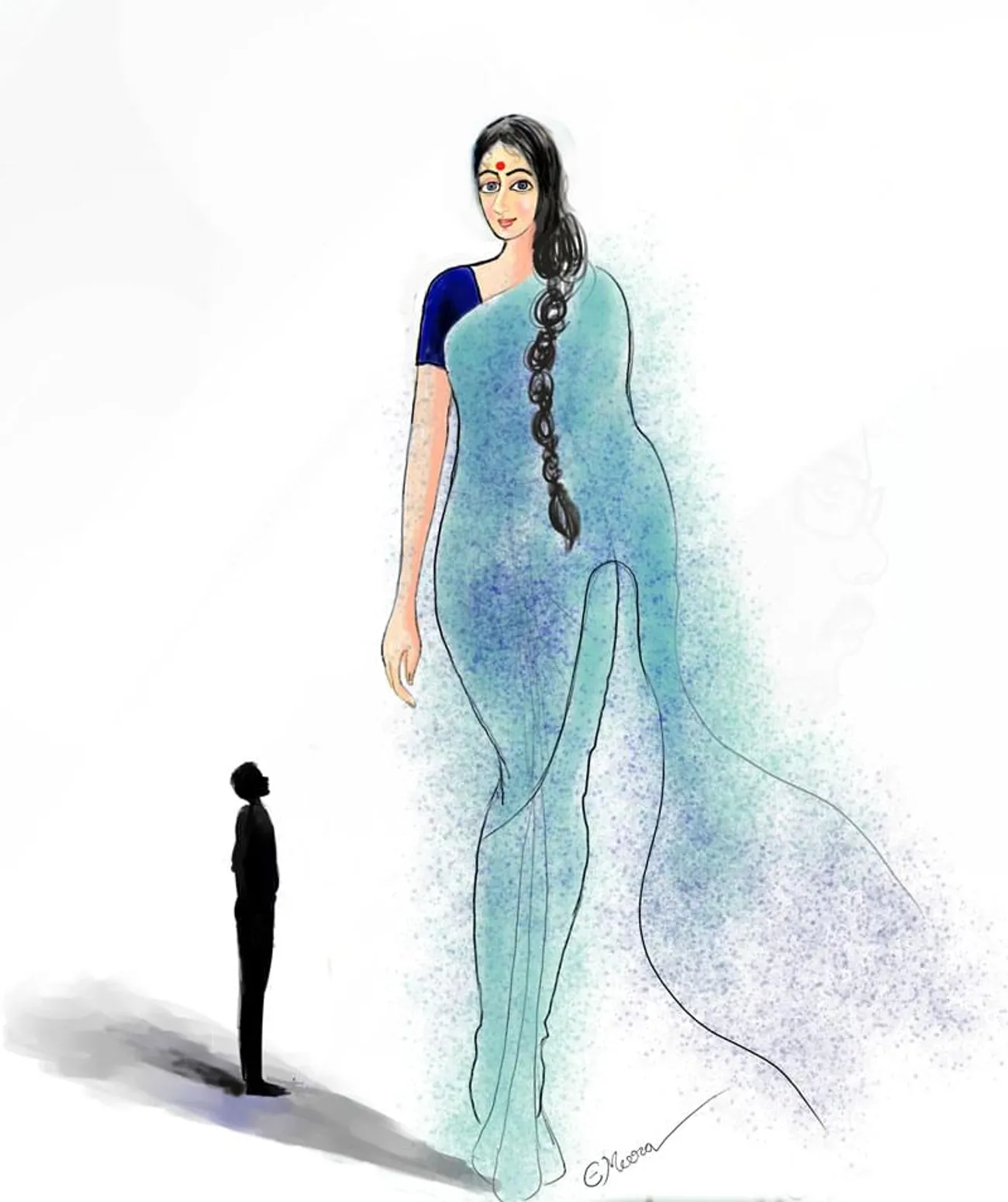 ദ്രുപദയുടെ കണ്ണുകളിൽ തന്നെ നോക്കി നിൽക്കുന്ന എനിക്ക് പക്ഷേ അപരിചിതത്വം തോന്നുന്നു. കാരണം കലർപ്പില്ലാത്ത പ്രണയത്തോടെയാണ് മെഹറൂഫ് സൃഷ്ടിച്ച ദ്രുപദ എന്നെ നോക്കുന്നത്. വല്ലാത്ത ആർദ്രത നിറഞ്ഞുനിൽപ്പുള്ള നോട്ടം.