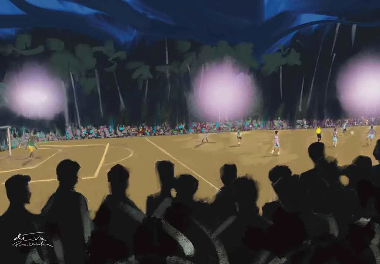 കാണികൾക്കിടയിൽ കത്തിയെന്നും കാളയെന്നും പേരുള്ള അഷ്റഫ് മൈതാനത്ത് ഓടിനടക്കുന്നു. കളി തുടങ്ങാൻ ഇനി നിമിഷങ്ങൾ മാത്രം ബാക്കി. എതിർ ടീം കളിക്കാരിൽ ഒരാൾ ഒഴികെ എല്ലാവരും ഗ്രൗണ്ടിൽ എത്തിയിരിക്കുന്നു. കളിക്കാരുടെ ഉറ്റ സുഹൃത്തായ ജീപ്പിലെ സ്ഥിരം പാട്ടുകാരൻ റഫീക്ക് അപ്പുറത്ത് നിലത്തിരുന്നു വരികൾ മൂളുന്നു, താൻ വരച്ച ഐ.എം. വിജയന്റെ മുഖചിത്രം കയ്യിൽ പിടിച്ചാണിരിപ്പ്. മൂളൽ ഏറെ നീണ്ടുപോവുംമുൻപേ റഫറി വിസിലടിക്കുന്നു, കളി തുടങ്ങുന്നു.