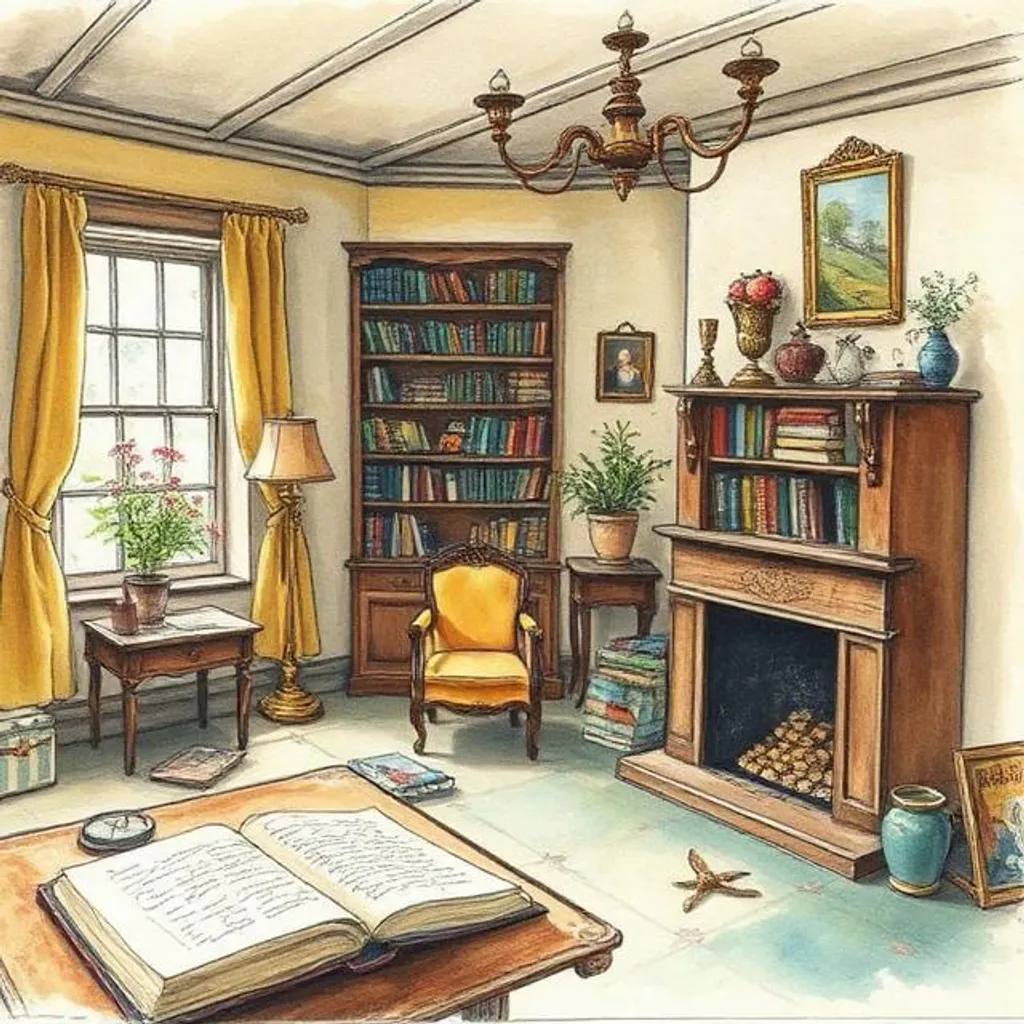 സ്വീകരണമുറിയിലെ ചില്ല് ജനാലകളിൽ വെളുത്ത കർട്ടനുകൾ. അവൾ ഒരു ജനാല തുറന്നിട്ടു. പച്ച നിറത്തിൽ ഒരു സോഫ. നീലയും ചുവപ്പും മഞ്ഞയും നിറമുള്ള കുഷ്യനുകൾ അവിടവിടെയായി കിടക്കുന്നു. ടീപ്പോയിൽ അരുന്ധതി റോയിയുടെ പുക വലിക്കുന്ന മുഖമുള്ള പുസ്തകം.